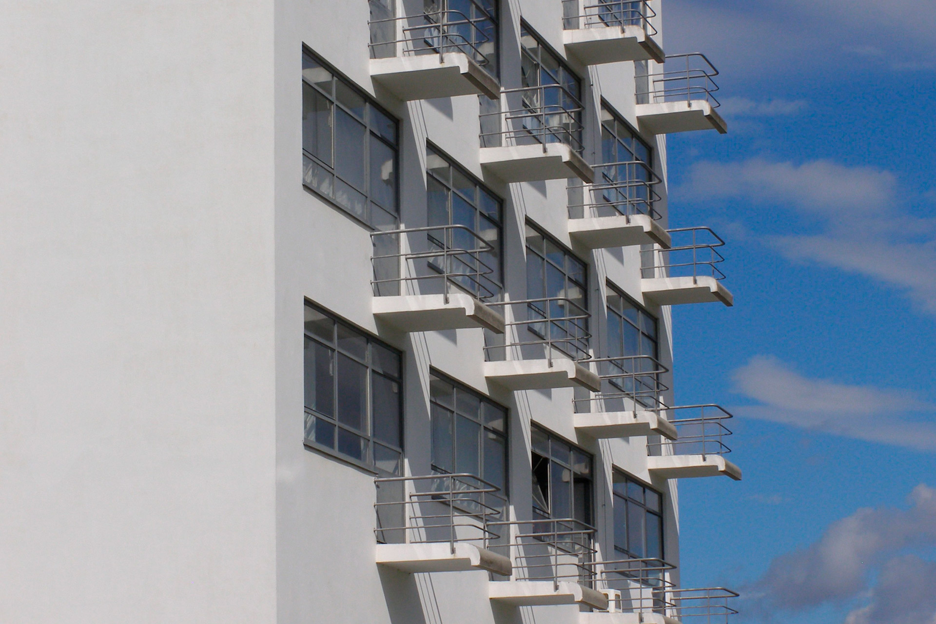 Die die einstige Kunst-, Design- und Architekturschule Bauhaus Dessau, geplant vom Architekten Walter Gropius, stammt aus den 1920er Jahren und ist Weltkulturerbe. Ohne Wärmedämmung und einfach verglast verbrauchte der historische Komplex zunehmend mehr Energie mit steigenden Kosten bei mangelndem Komfort und bauphysikalischen Problemen auf Grund veränderter Nutzung. Die Stiftung Bauhaus Dessau beauftragte Transsolar, ein Klimakonzept zu entwickeln, das eine denkmalgerechte Sanierung ermöglicht und den CO₂ Ausstoß deutlich senkt. Besonders wichtig war es, Fassade und Wandflächen vor Tauwasser zu schützen und das Erscheinungsbild dabei zu bewahren. Transsolar hat Gebäude und Verbrauch analysiert und nach Vereinbarung der energetischen Ziele vielfältige Sanierungsvorschläge eingebracht. Iterativ abgeklärt mit dem Denkmalamt entstand daraus der Katalog von Sanierungsmaßnahmen, mit Einzelbewertung zu Einsparpotential, Investitionskosten sowie Denkmal- und Nutzerakzeptanz. Kraft-Wärme-Kopplung versorgt nun das Gebäude mit Fernwärme. Neue Pumpen, ferngesteuerte Heizkörperregler und gedämmte Leitungen im Gebäude senken den Energieverbrauch, ohne in die Architektur einzugreifen. Eine neue Nutzungsverteilung entsprechend der erzielbaren Dämmstandards und Verschattungsmöglichkeiten wurde erarbeitet. Für die Gebäudehülle wurden mit den Architekten und einer Fassadenfirma spezielle thermisch getrennte Fassadenprofile entwickelt, die den Originalprofilen sehr nahe kommen. Die Einfachverglasung wurde in großen Teilen des Gebäudes duch eine Isolierverglasung ersetzt. Diese hat minimalen Scheibenabstand und Kryptongasfüllung jedoch keine low-e Beschichtung, um das Erscheinungsbild denkmalgerecht zu bewahren. Historische Fassadenprofile, die nicht thermisch getrennt ausgeführt werden konnten, temperiert eine elektrischen Begleitheizung und verhindert Kondensatausfall und Korrosion. Die Fassade verliert 50% weniger Wärme und sorgt für mehr Behaglichkeit durch weniger kalte Flächen. Eine mit der Denkmalpflege abgestimmte PV-Anlage sorgt für elektrische Energie. Ihre geschlossene Fläche aus rahmenlosen flachen Modulen auf dem Dach ist von unten fast unsichtbar und erwirtschaftet ca. 16.400 € Einspeisevergütung pro Jahr. Das Bauhaus spart mit nur einem Teil der vorgeschlagenen Maßnahmen mehr als ein Drittel an Heizenergie ein bei fast 50% weniger CO₂ Ausstoß und kann nun viele Räume ganzjährig nutzen.