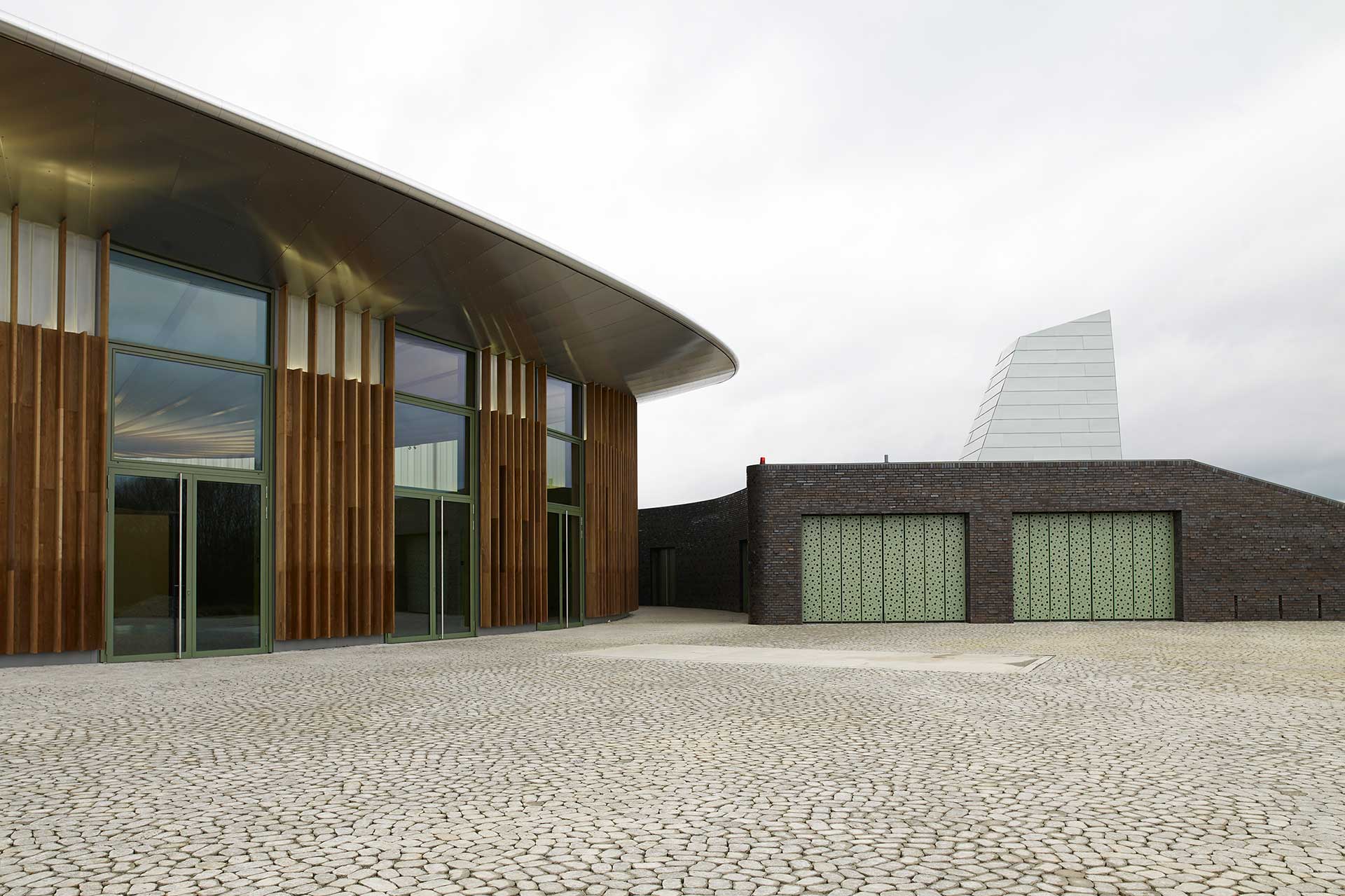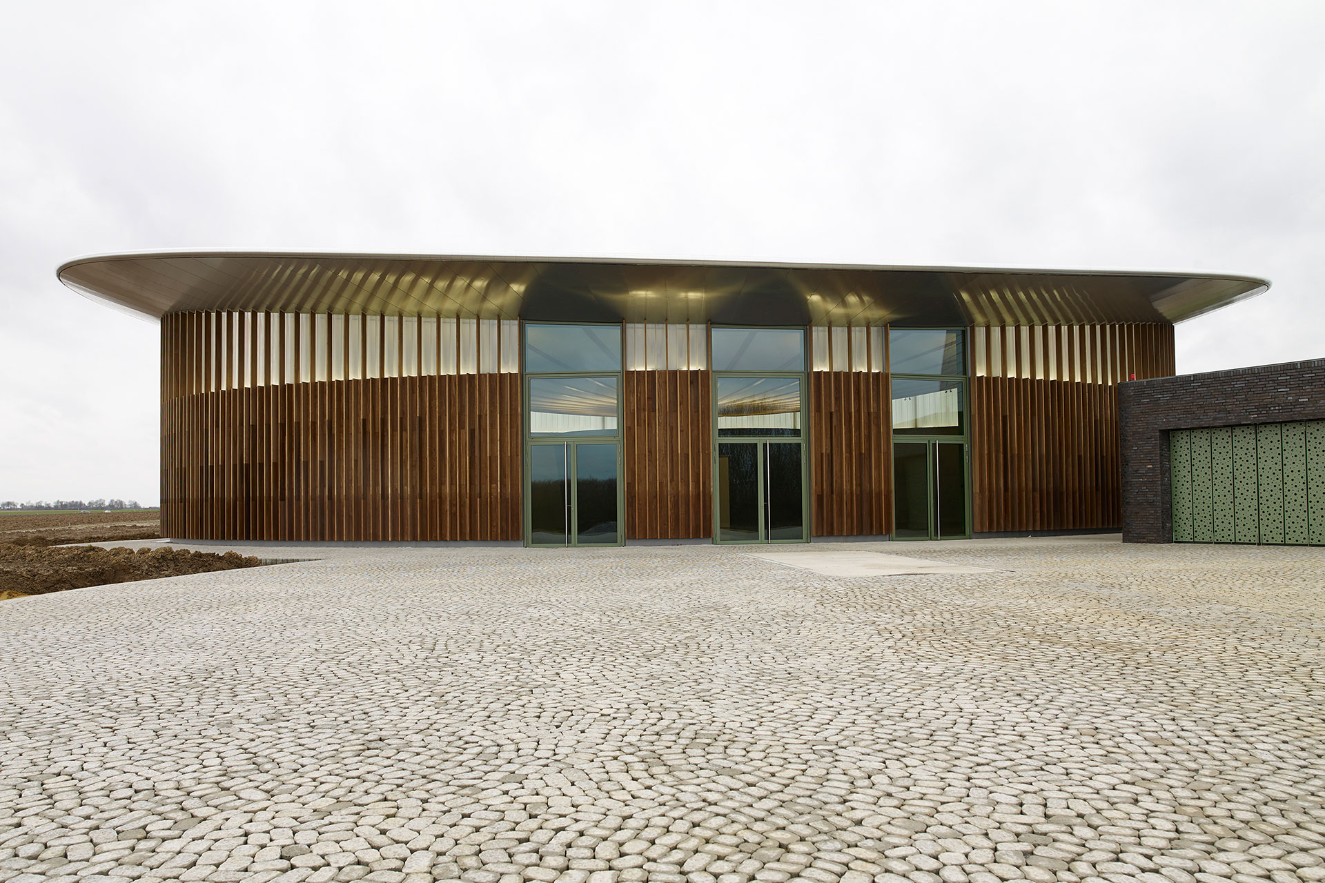 Die Skulpturenhalle Thomas Schütte ist der Neubau eines Privatmuseums, der die Kunstlandschaft rund um die Insel Hombroich um eine neue Adresse bereichert. Das Gebäude entstand in enger Zusammenarbeit zwischen den Architekten RKW und dem Künstler Thomas Schütte, der das Untergeschoss der Halle auch als Depot für seine Werke nutzt.