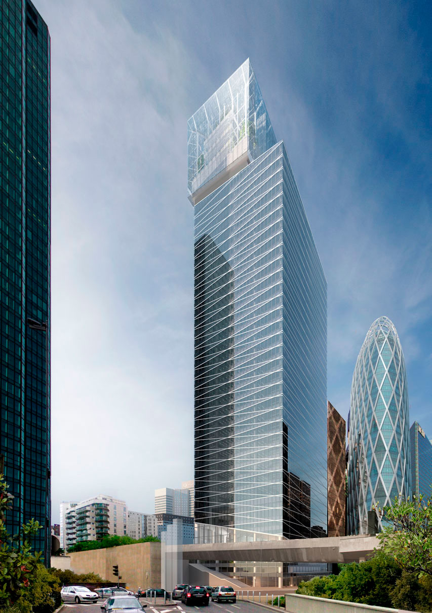 In erster Linie wird das Hochhaus aus Büroflächen bestehen, die im „Turmkörper“ untergebracht sind und sich auf 25 Etagen identisch wiederholen. Der "Turmkopf" setzt sich zusammen aus einem zurückgesetzten, schmaleren Kubus, der von einem Glasdeckel umgeben ist. Dieser schützt die dort gepflanzten Gärten, die für Empfänge genutzt werden können, vor Wind.