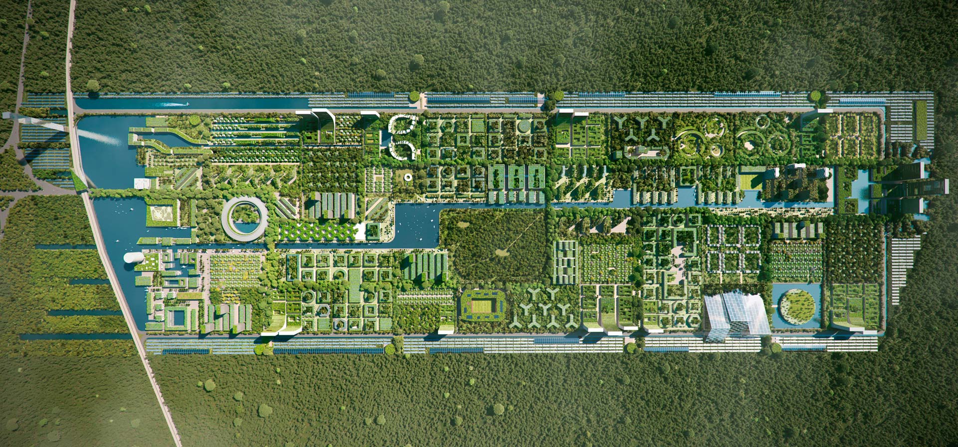 Der Masterplan, entwickelt von einem großen Team, für eine neue Stadt nahe Cancun an der Küste der Halbinsel Yucatán, gedacht für die Ansiedlung von Unternehmen bei hoher Qualität für Aufenthalt und Arbeit. Auch Bildungsmöglichkeiten sollen entstehen, Hochschulen und öffentliche Einrichtungen. Herausfordernd war es, die übliche Art der Gebäudegestaltung vor Ort umzukehren: Behaglichkeit ohne klassische Klimaanlagen, ermöglicht mit wohl durchdacht gestalteten Gebäuden, die zudem keine klaren Grenzen zwischen innen und außen aufweisen und die sich selbst versorgen.