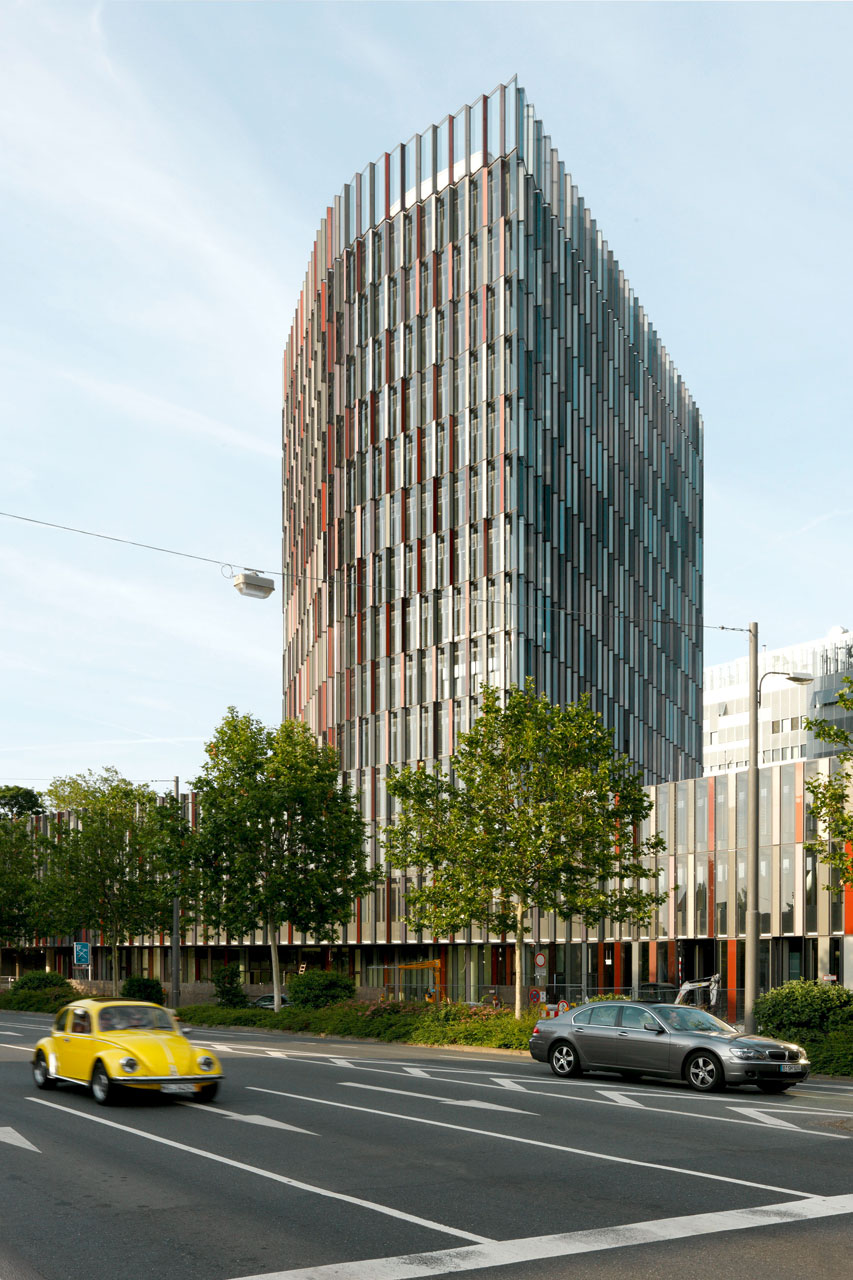 Ce bâtiment est la première tour au monde dont la consommation d’énergie primaire est inférieure à 100 kWh/m²/an. Haute de 56 mètres pour 15 étages, cette extension du siège social du groupe bancaire KfW à Francfort offre environ 700 nouveaux postes de travail et de nombreuses salles de conférences.