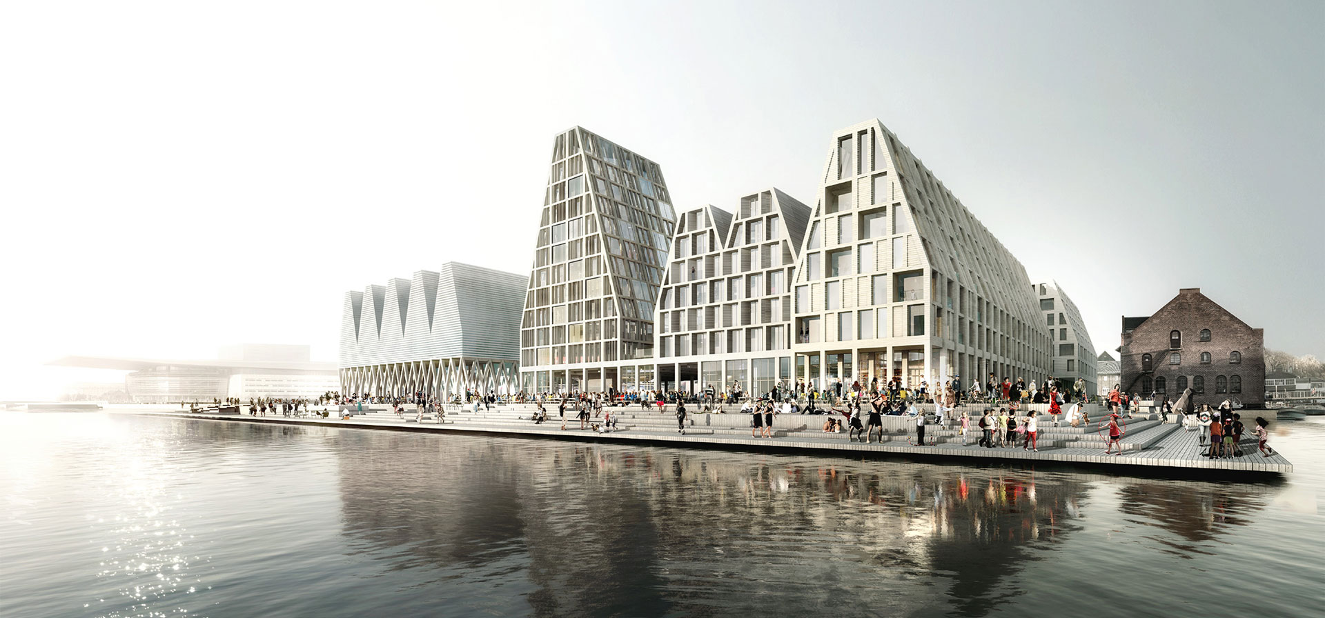 Christiansholm - also known as Paper Island - in the heart of Copenhagen's harbor is one of Copenhagen’s most attractive locations. The vision of the competition won by the team led by COBE is to create a unique area, where manageable and intimate street spaces provide a space of high environmental quality. The 45,000-square-metre development contains a re-interpretation of the successful former industrial halls by creating a plinth with pitched-roof halls containing event spaces, galleries and a swimming pool. Housing is placed on top of the ground-level uses that surround a green public courtyard.