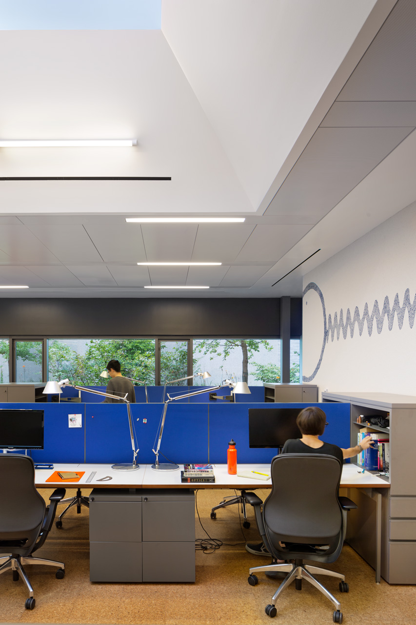 Les concepts climatiques sont adaptés à chacun des programmes proposés ; et axés en permanence sur l'accès à la lumière naturelle et la vue. Les surfaces vitrées faisant face à la cour du jardin sont les principales sources de lumière naturelle et permettent une ventilation naturelle dans les bureaux. Un puits de lumière avec un ombrage fixe fournit un accès à la lumière du jour jusqu’aux espaces en cœur de bâtiment. Un transfert d’air par cascade des bureaux vers les laboratoires et les salles blanches fonctionne aussi bien en mode mécanique qu’en mode ventilation naturelle, minimisant ainsi les besoins énergétiques pour transporter et conditionner l’air extérieur.