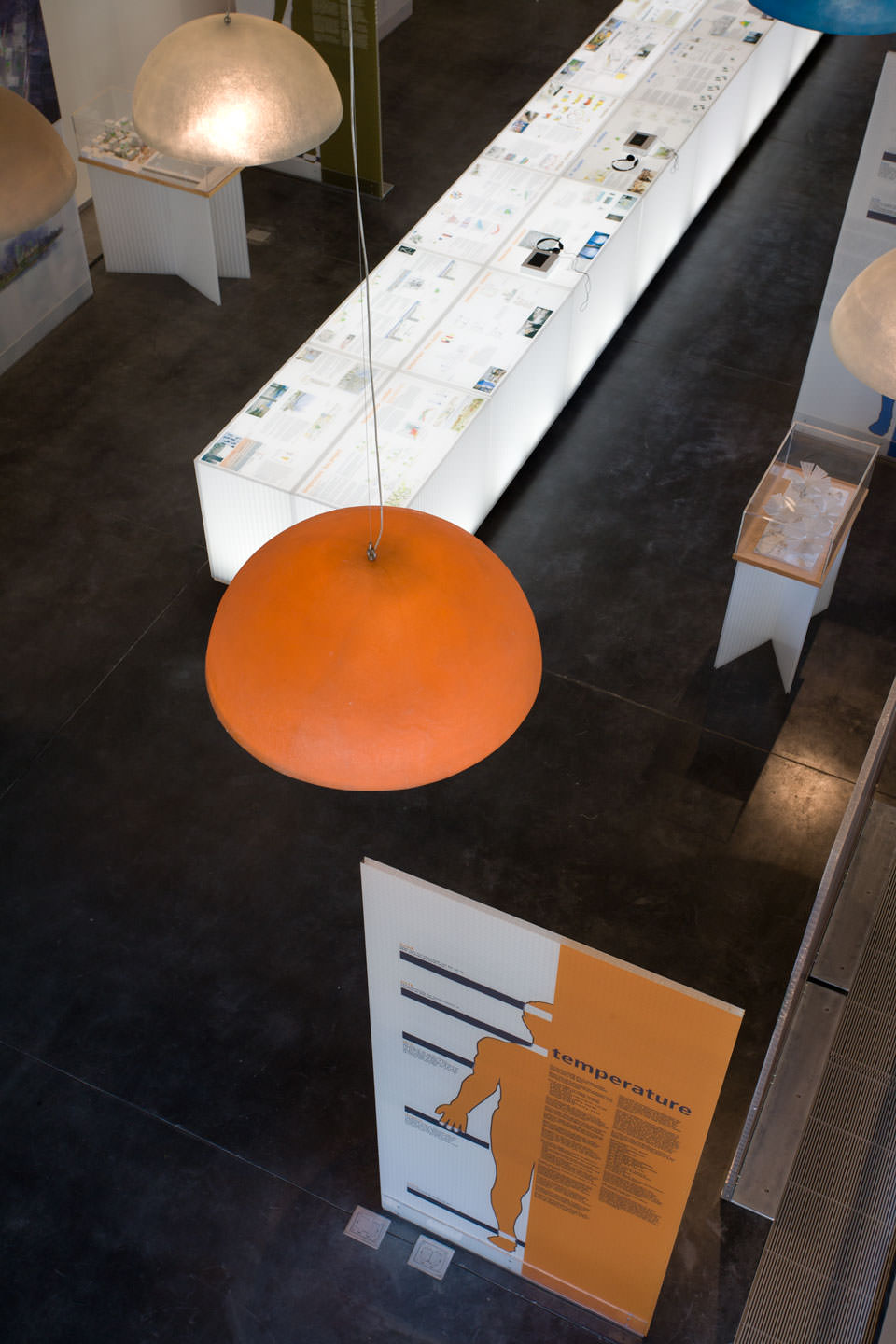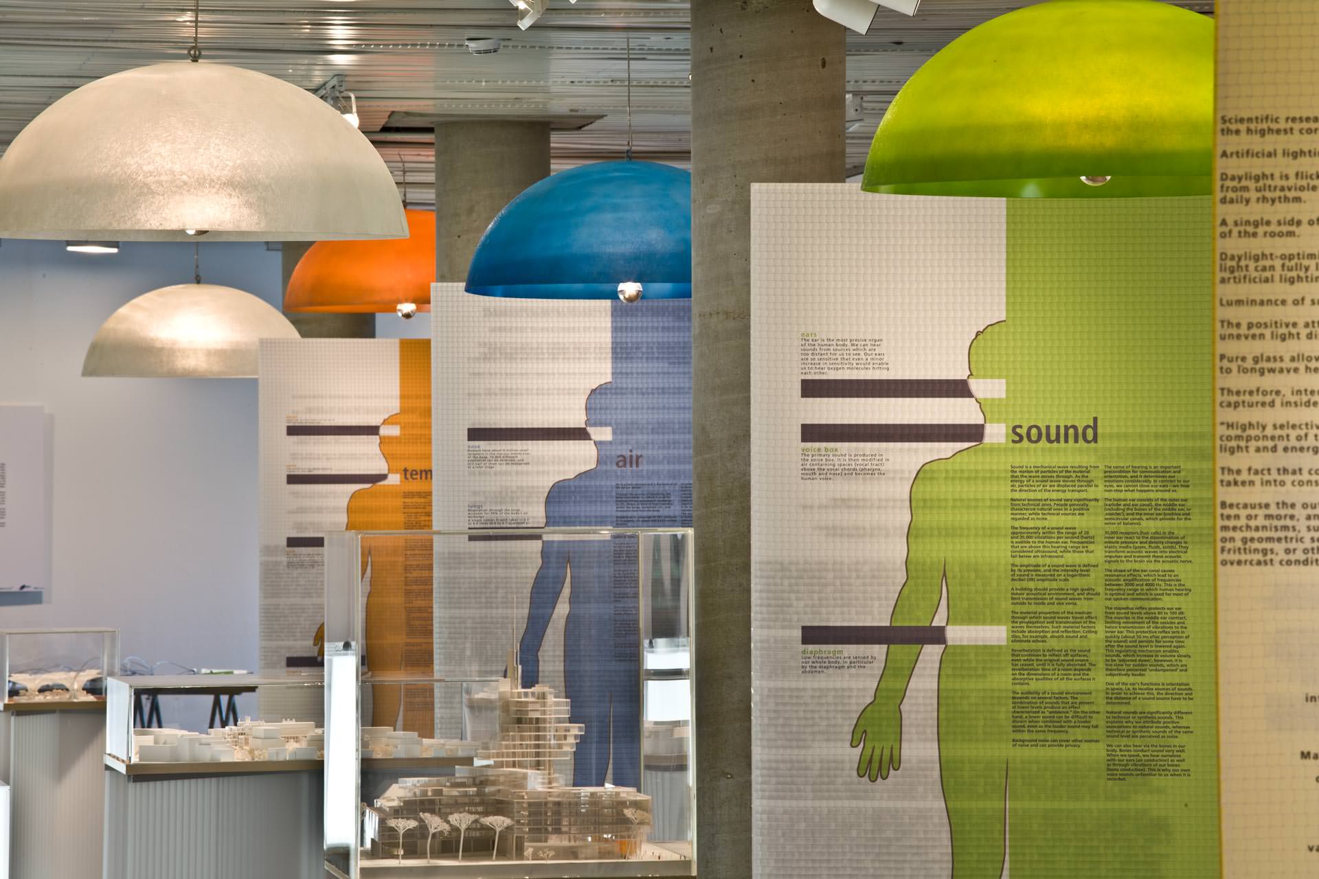 The Ecology.Design.Synergy exhibition is a cooperation with the ifa (Institut für Auslandsbeziehungen, English: Institute for Foreign Relations) and the Aedes Architecture Forum. It attempts to bring a new perspective to sustainability, one with a personal significance to the individual, instead of seeing sustainability on a global level which is typically encountered in the media. The curator, Frank Ockert, accomplishes this goal by elucidating what temperature, air, light, sound, material and human scale are, what sustainability measures in the built environment are, and how these natural and man-made phenomena are perceived by the human mind and body.