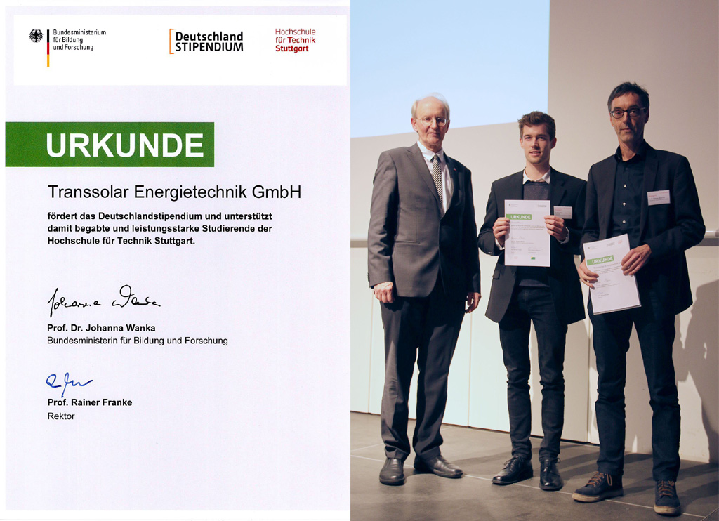 The Stuttgart University of Applied Sciences participates in the Deutschlandstipendium of the Federal Ministry of Education and Research. The sponsored students receive 300 Euros per month through the Deutschlandstipendium. 1,800 Euros per year and students are taken over by the federal government and 1,800 euros are raised by the university through private sponsors.