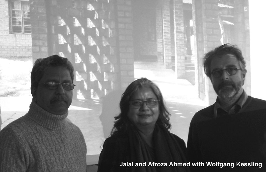 On 6th December 2017, Jalal and Afroza Ahmed from J. A. Architects gave us the honor to visit us and share their decades of experience in work and the difficulties of life in the delta impacted by the waters of Monsoon, Ganges, Brahmaputra, Padma, where gardens may float besides fishes in cages, both meant to feed people. We learned about they cleverly set up local brick-buildings, about the poky slums where fire desasters might be followed by formidable “build back better” campaigns and much more, including the innovative new BRAC University, rising in Dhaka for to improve in future both, that ever growing metropolis and the country in general, Bangladesh.