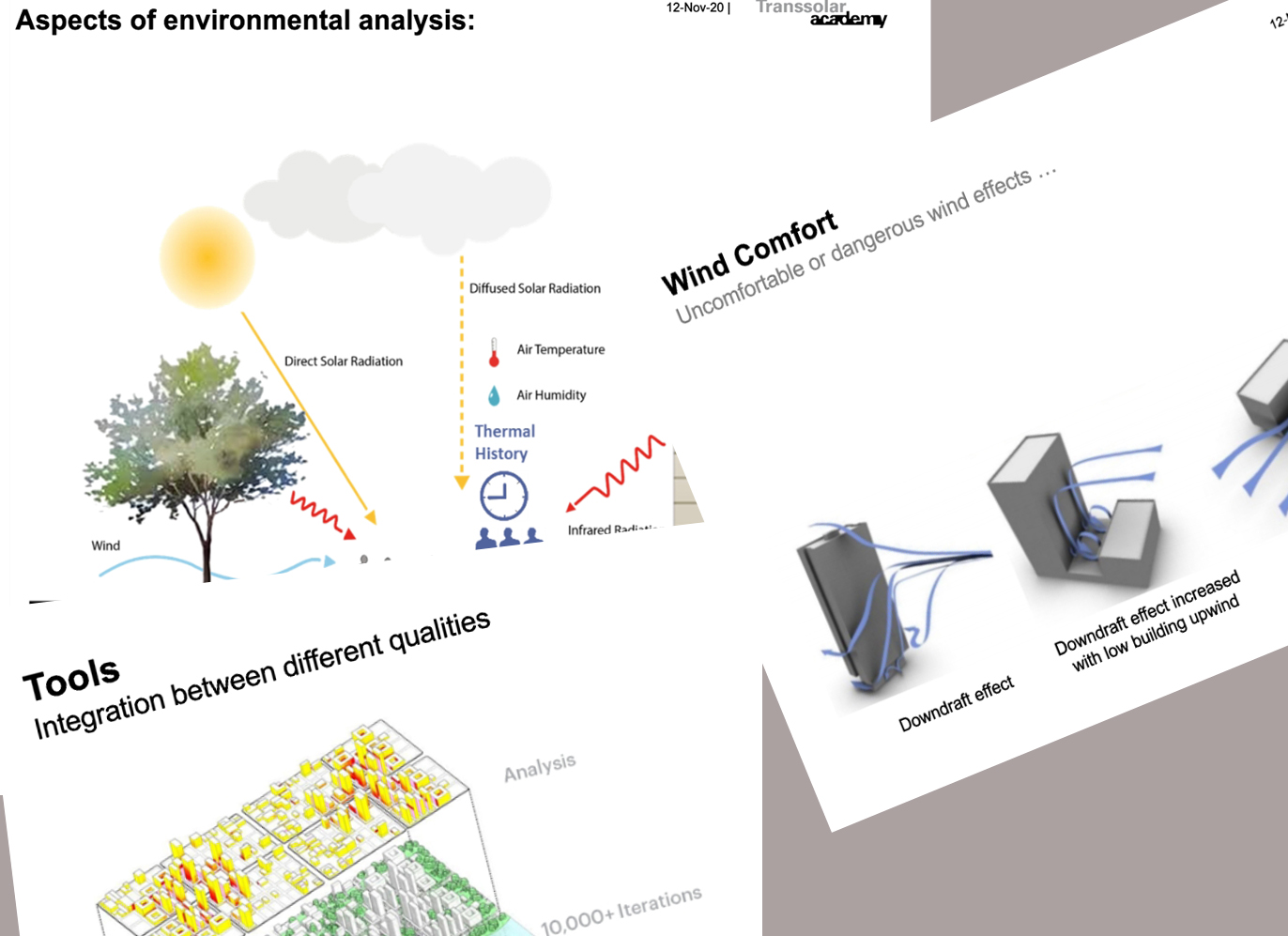 They play a key role in the seminar class Climate-responsive Design, which is held by the Academy of Fine Arts in Stuttgart and includes students from the University of Stuttgart Masters’ Program Integrated Urbanism and Sustainable Design (IUSD).