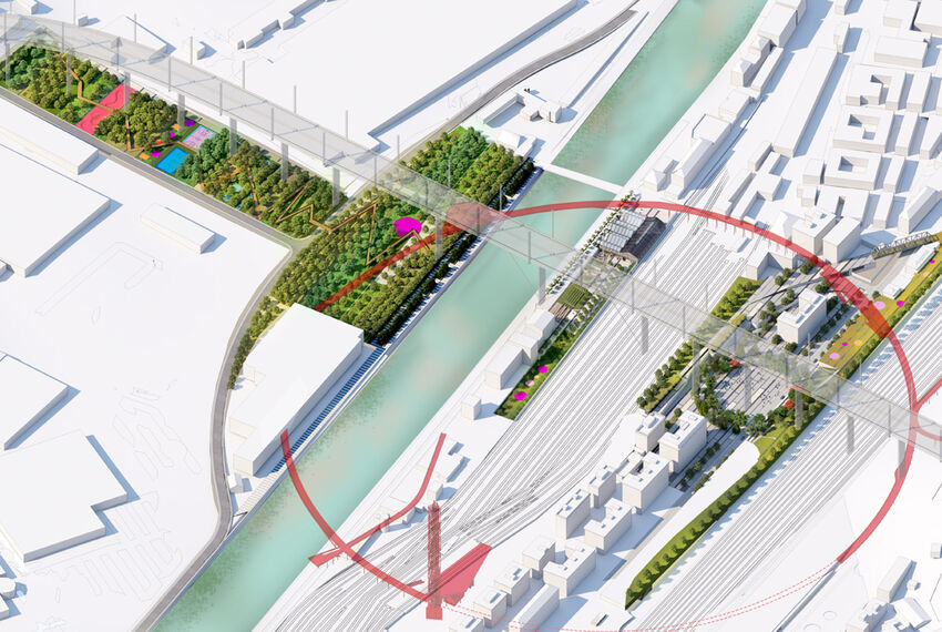 As expressed from the early stages of the competition, the objective of the intervention, in addition to creating a new quality public space and a garden of biodiversity, is to connect, through a new bicycle-pedestrian and energy infrastructure, the Red Circle, areas that are now separated from each other. The system of squares and parks, together with the new Ring imagined in the Competition phase and which in the next planning stages will be investigated how to finance, will be regenerated places that will run under the new Renzo Piano bridge; symbolic elements and manifesto of an urban mending between the two sides of the valley.