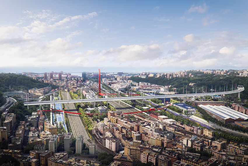 "The ‘Red Circle’ runs along the locations where the tragedy of 14 August 2018 occurred. It embraces them without separating them from their context, linking them together, [...] joining the separate sections through bike/pedestrian path and distributing the renewable energy generated by the solar collectors - thermal and photovoltaic - located on the roofs of the buildings, by the Wind Tower and by the piezoelectric flooring (which symbolically contribute to the energy balance) converting into energy the traffic flows that run through the new Bridge and the Circle. Energy….". This is how Stefano Boeri, group leader of the team that won the competition, opens the presentation that summarises the key points of the project.