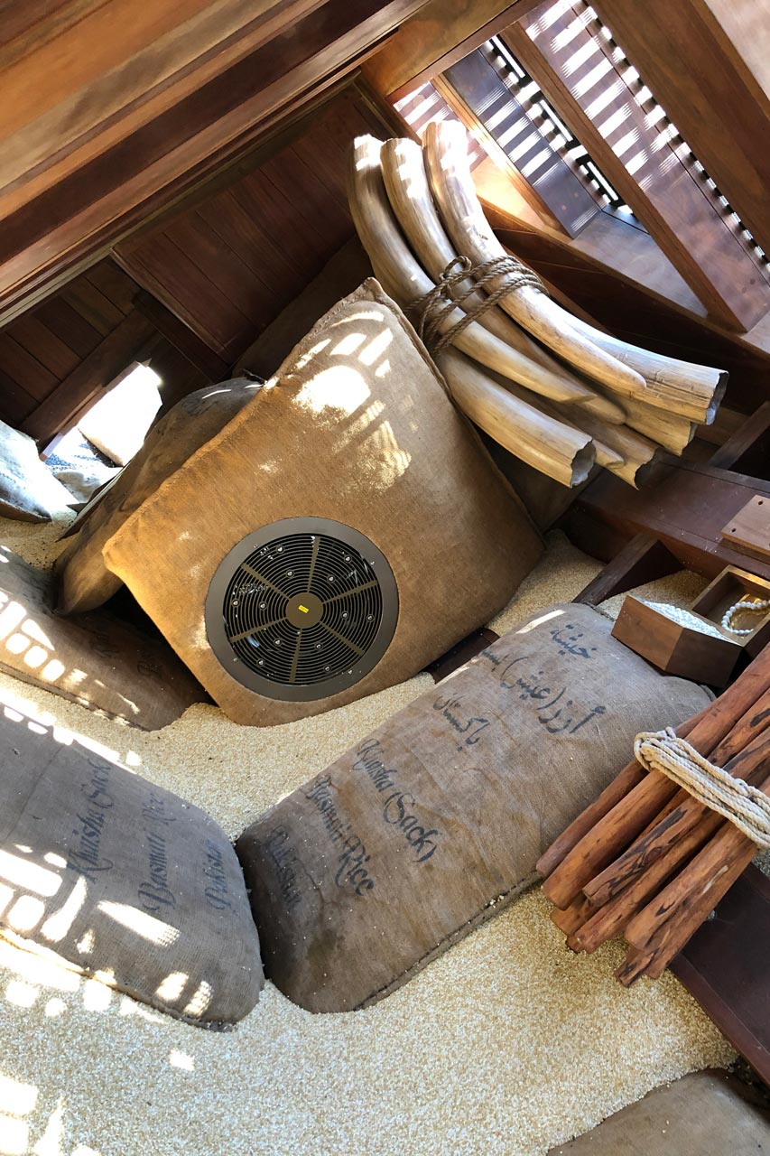 In addition, a technology developed by Transsolar, which we call 'Dry Mist', improves comfort “on board” by evaporative cooling. The necessary ventilators, the 'Dry Mist Fans', are built into custom-made elements such as clay pots or cargo boxes as well as the hull of the ship and are integrated into the architectural concept.