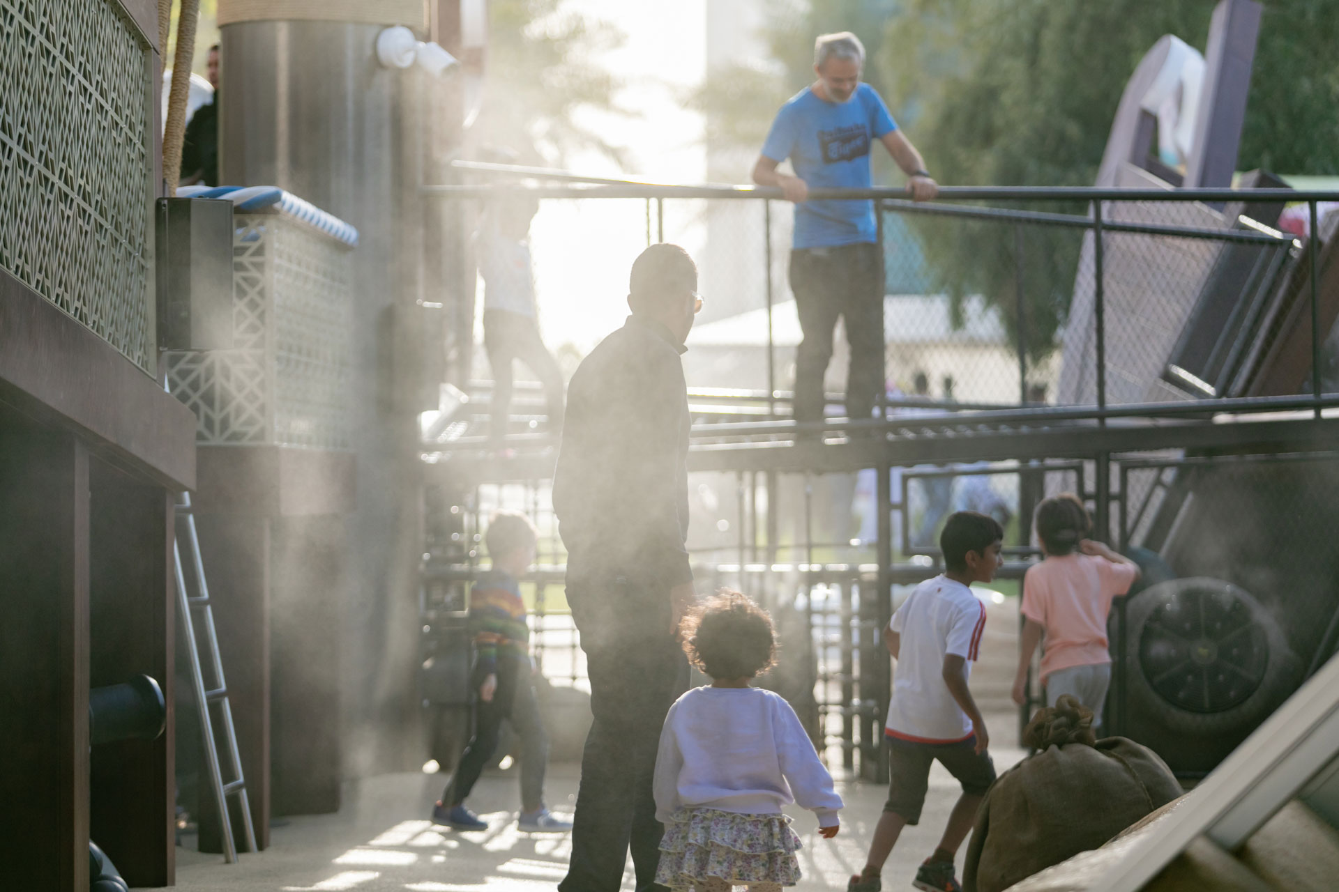 The climate in Doha is rather moderate in winter and invites you to stay outside. In summer, however, it is very hot for long periods of time and the humidity varies from very dry to extremely humid. Transsolar was responsible for the concept to improve the outdoor comfort and set the goal to achieve more pleasant conditions for playing children and parents in this extreme climate and thus extending the usage times of the playgrounds.