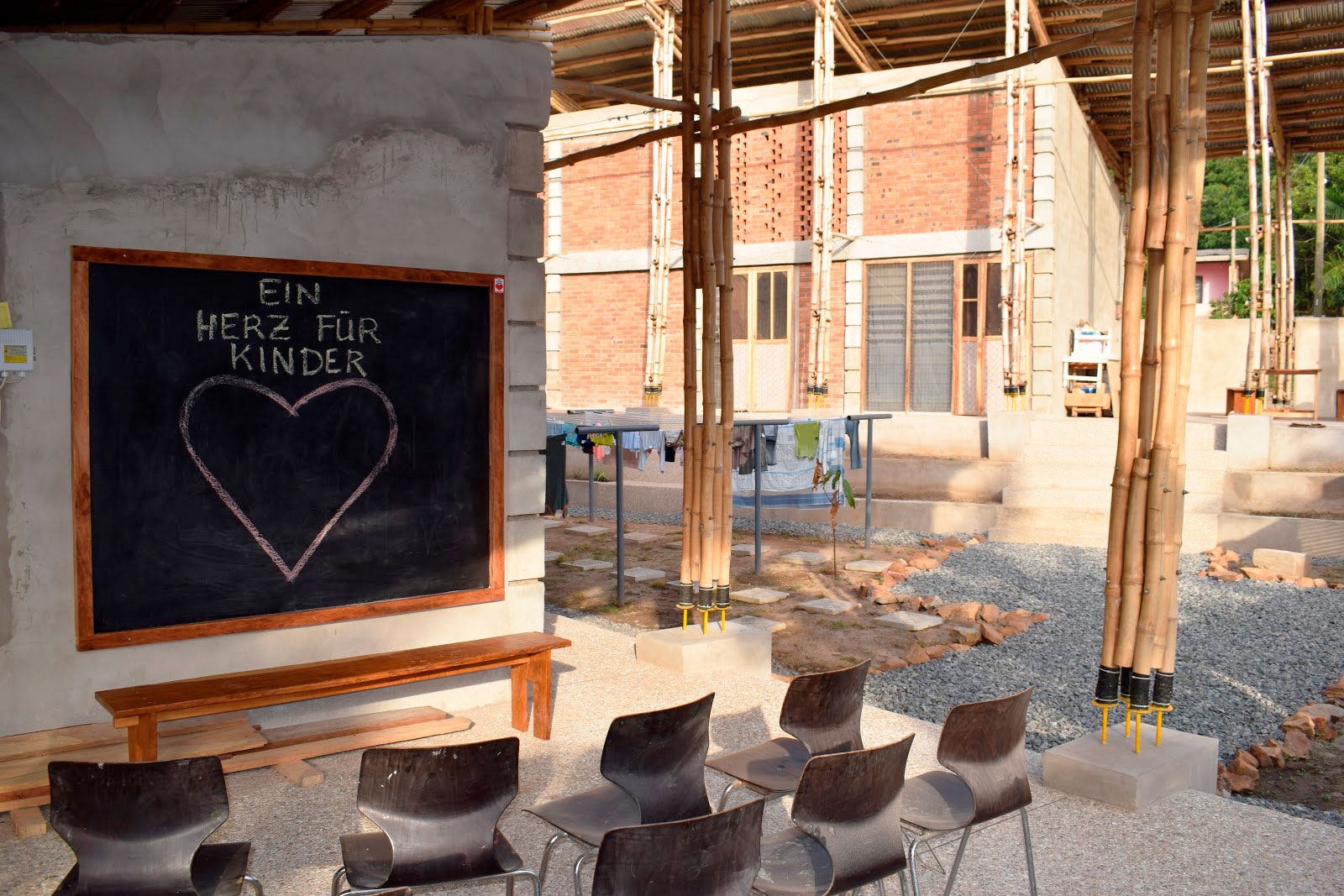 The midwifery house is a non-profit project, showcasing architecture as an act of social responsibility. It is a place where German and Ghanaian midwives and doctors live, learn, teach and work. Since 2015, about 50 students worked on the design and construction of this midwifery school which includes a residence. The local school for craftsmen "Havé Tech" were also involved. Construction was completed in 2017.