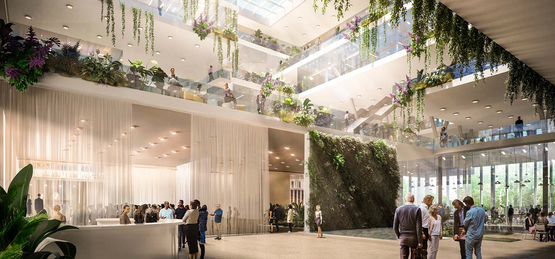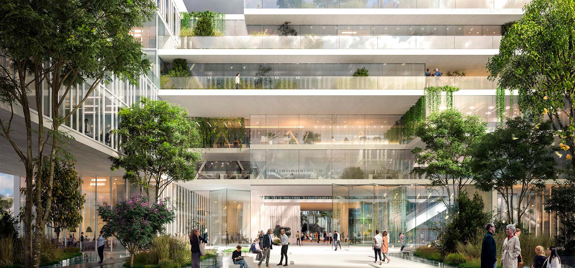 Another defining element of the concept is the so-called "Green Core" - a 7-story atrium with partly open work and communication levels.