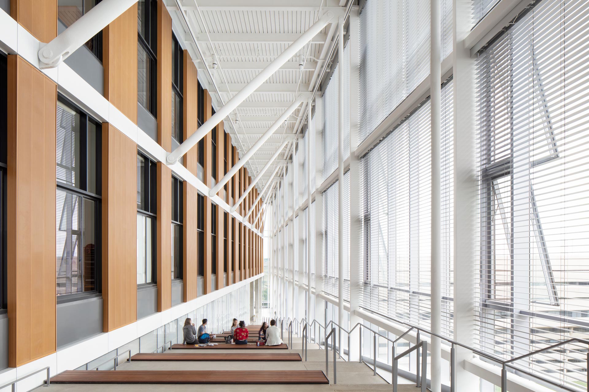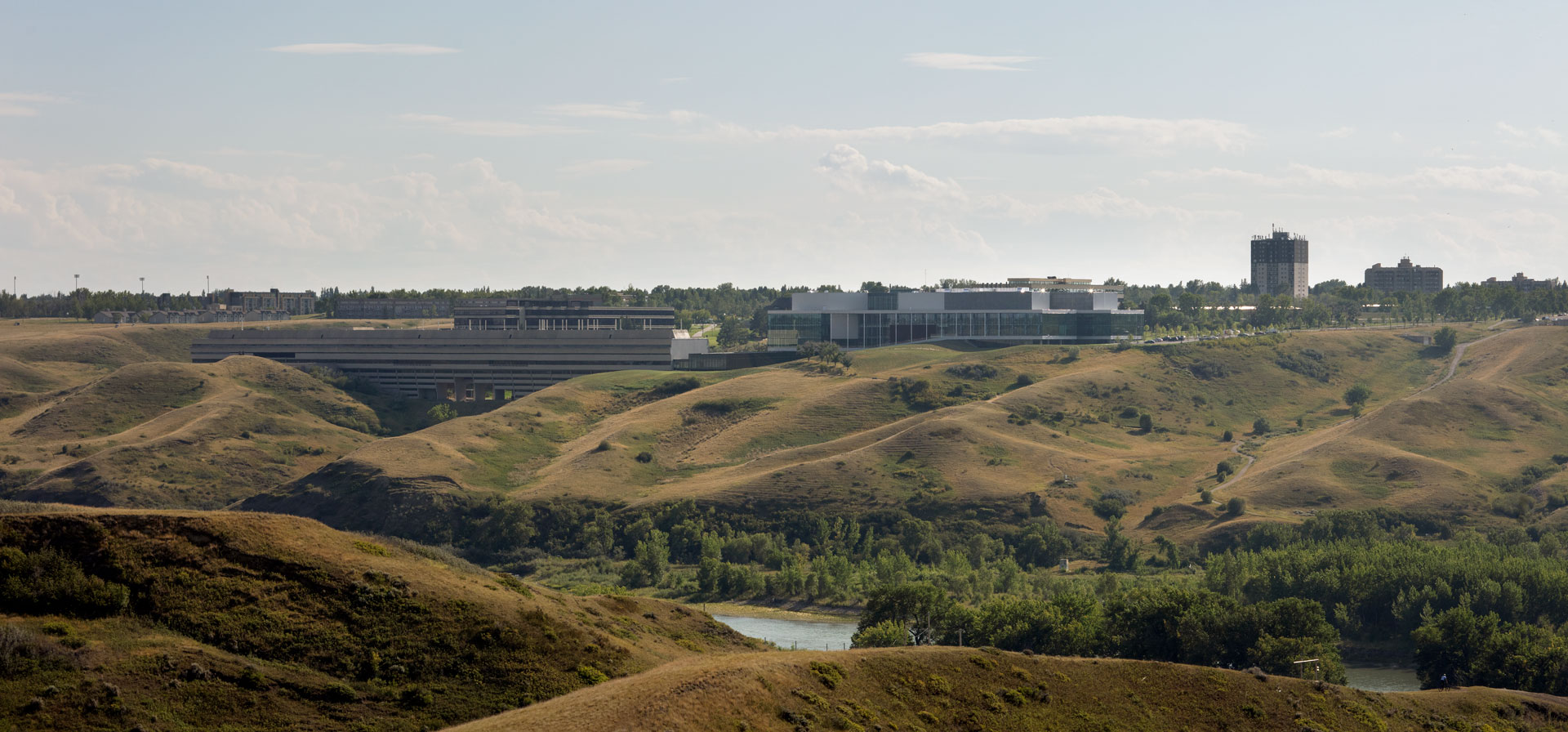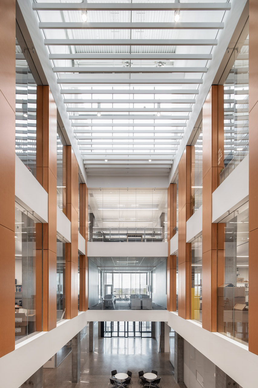 The Destination Project, the largest construction project of the University of Lethbridge to date, is a building dedicated to research and teaching of natural sciences, designed to offer comfort and functionality while keeping energy consumption low. Summers on-site are warm and humid, while winters are extremely cold. When Chinook occurs, the wind may have hurricane speed and cause extreme temperature fluctuations. For Transsolar, the task was to reduce energy consumption in order to create the most sustainable laboratory building in the province that would best support users and their work.
