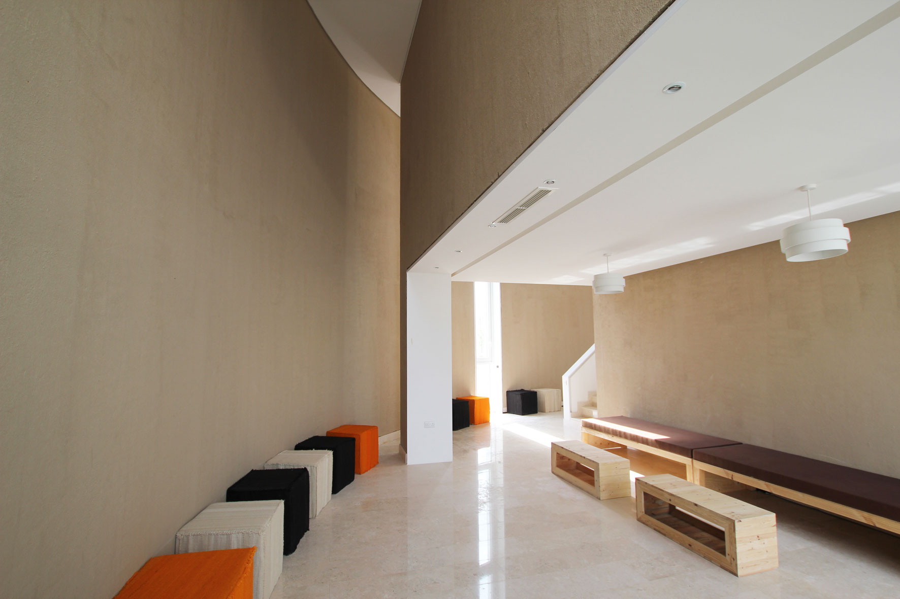 The passive strategies comprise a compact volume, an optimal orientation to minimize solar gains and maximize view connection, a highly insulated and air tight envelope, thermal mass outside, internal clay wall bricks to buffer humidity levels, natural wind supported cross and stack ventilation and smart