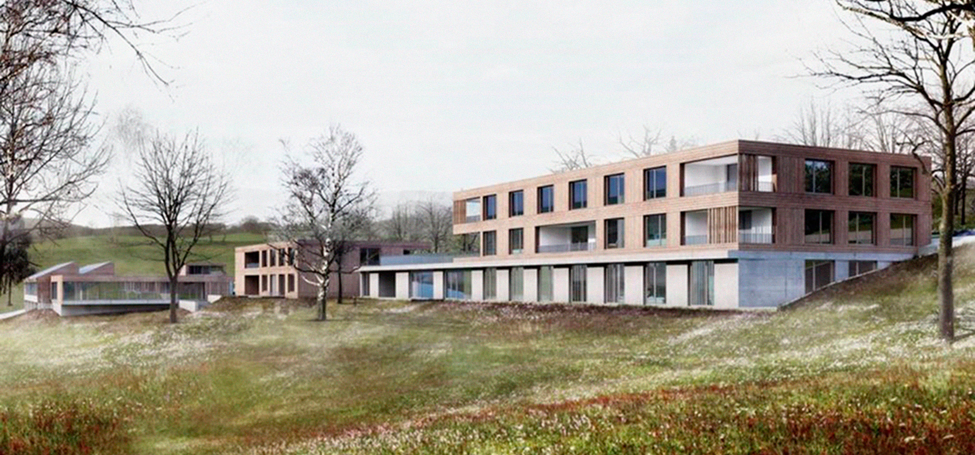 The goal of the concept for the new construction of a dormitory and workshop is to construct the buildings in a way that they can become neutral regarding their CO2 emissions. This means that CO2 which is inevitably released both by operation and construction (grey energy), can be compensated locally by generating power with photovoltaics. The balance is based on the fact that generation of energy that does not release CO2 avoids conventional power generation elsewhere and thus the emission of the climate-damaging gas in the corresponding amount.
