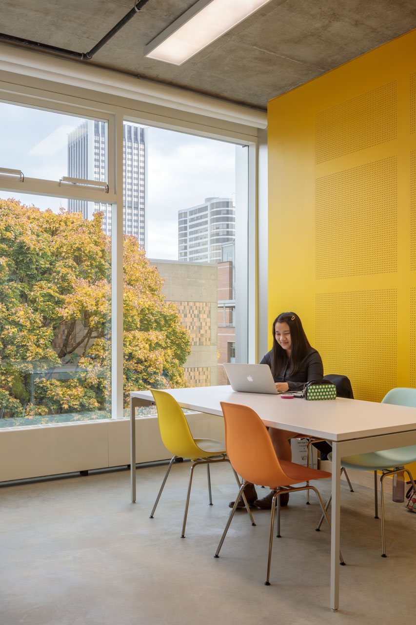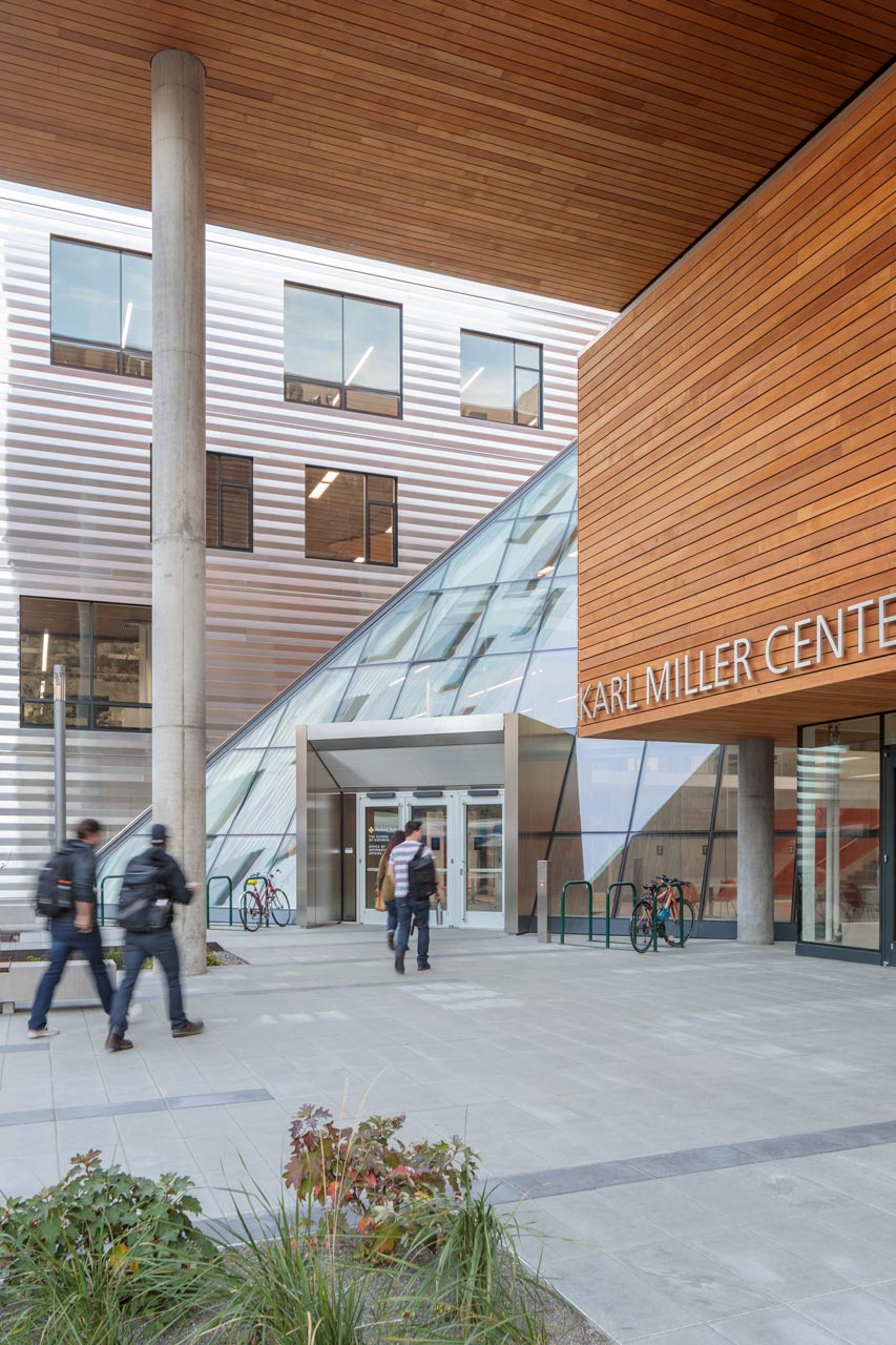Administration is uniquely positioned to integrate with the city’s rich network of public open space and diverse urban uses. The project includes a total renovation of the existing school and a new building, called the Karl Miller Center to house additional lecture halls. Between these two buildings is a light and airy atrium which serves as both a transition and gathering space.