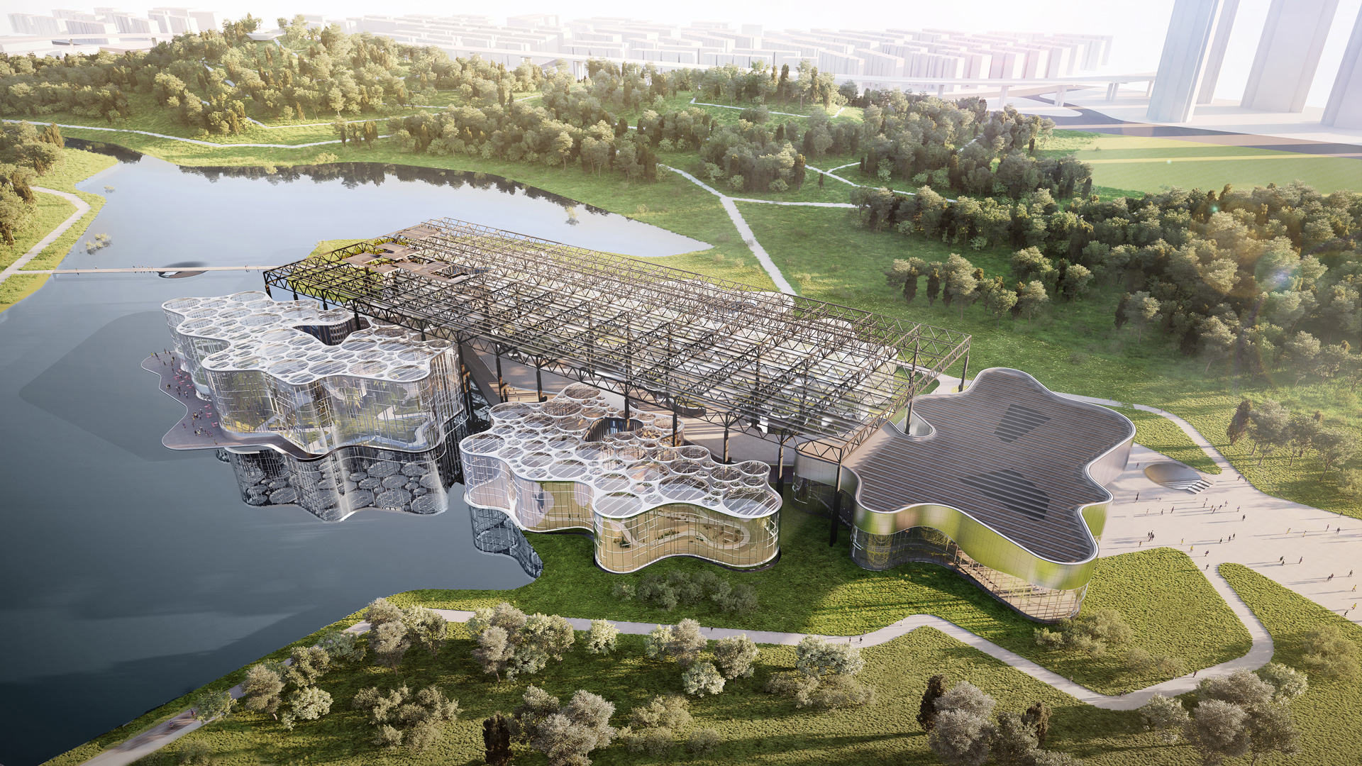 Double thermal glazing was envisioned to limit the enormous energy expenditure. Such glazing has the major disadvantage of losing a lot of irradiation, which might have to be compensated for with artificial light so the plants can thrive, as the intended plants are from climatic zones that offer a great deal of light: The greenhouses in this project are intended to house a desert, a tropical rainforest, and the Cloud Garden.