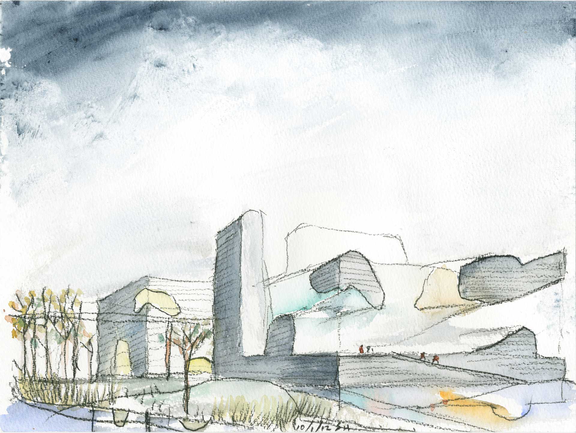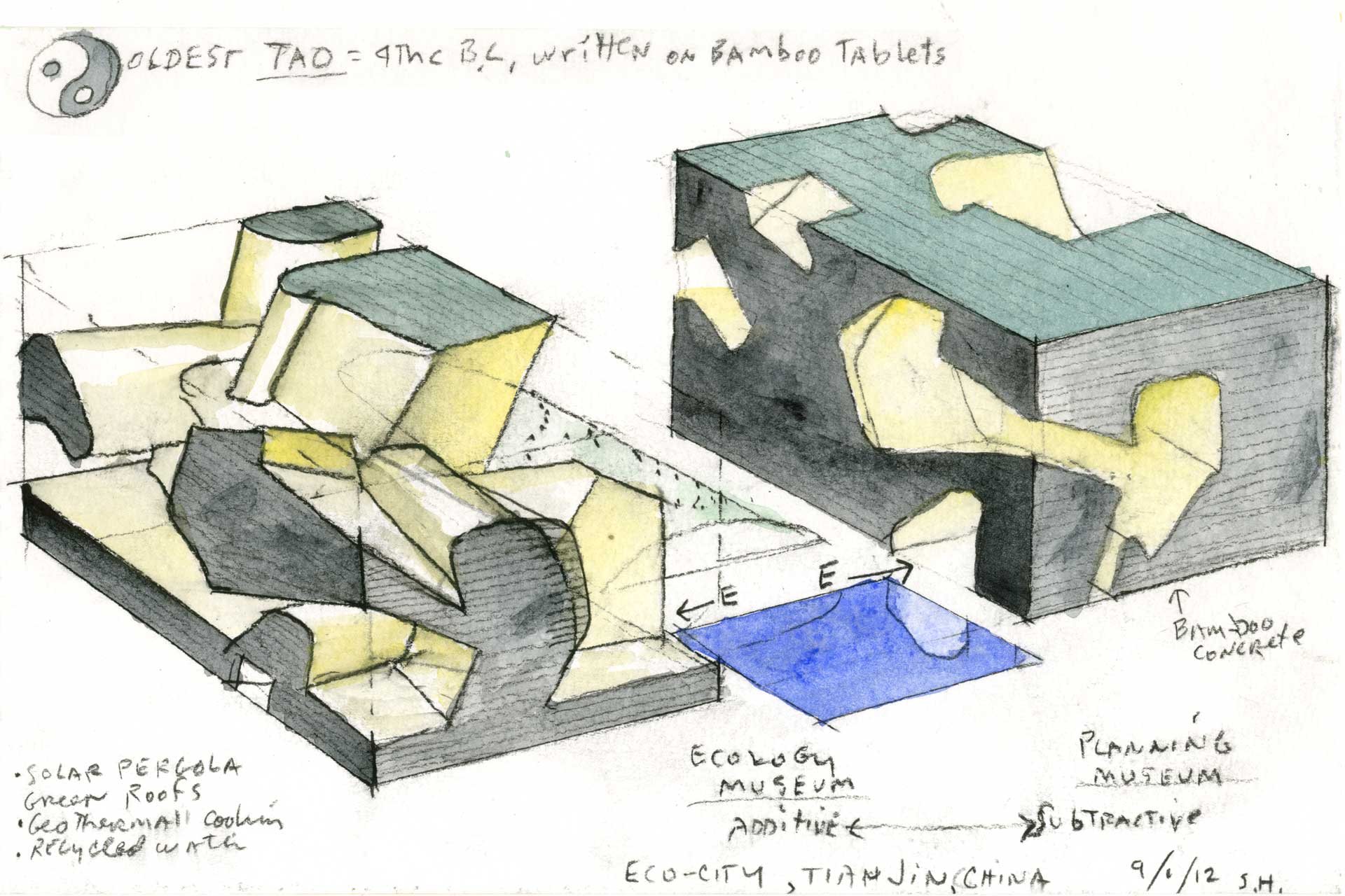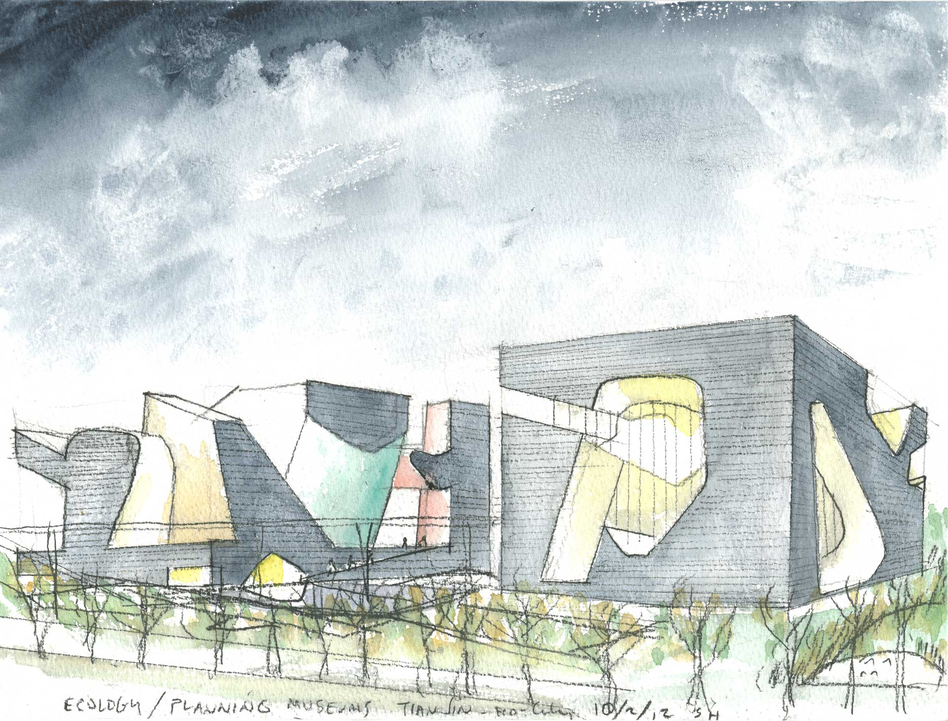 The Ecology and Planning Museums are the first two buildings of the cultural district of Eco-City Tianjin - a new city for 350,000 inhabitants that is a collaboration of the governments of Singapore and China and will demonstrate state of the art sustainable aspects. The Planning Museum is a “subtractive” space, while the Ecology Museum is an “additive” complement, a reversal of the space carved out from the Planning Museum.