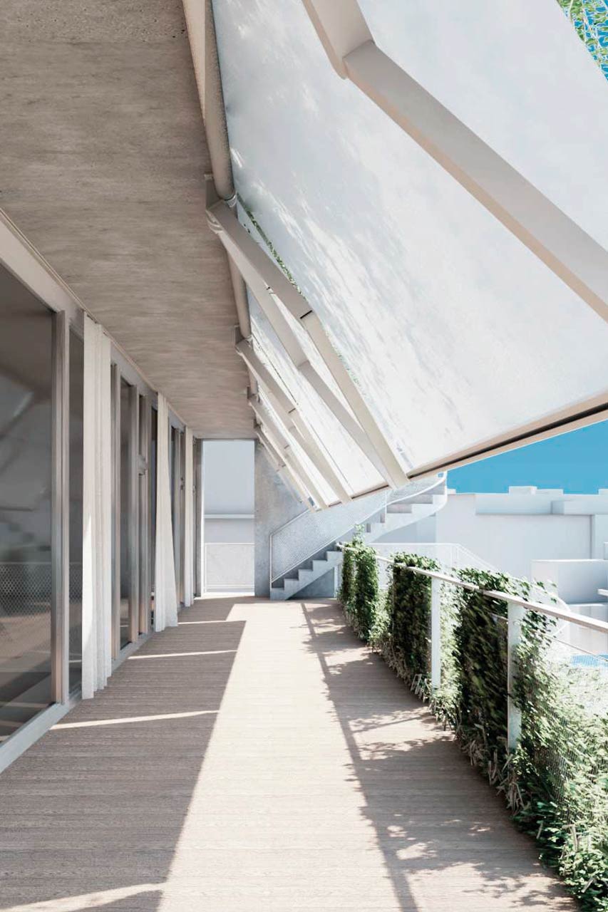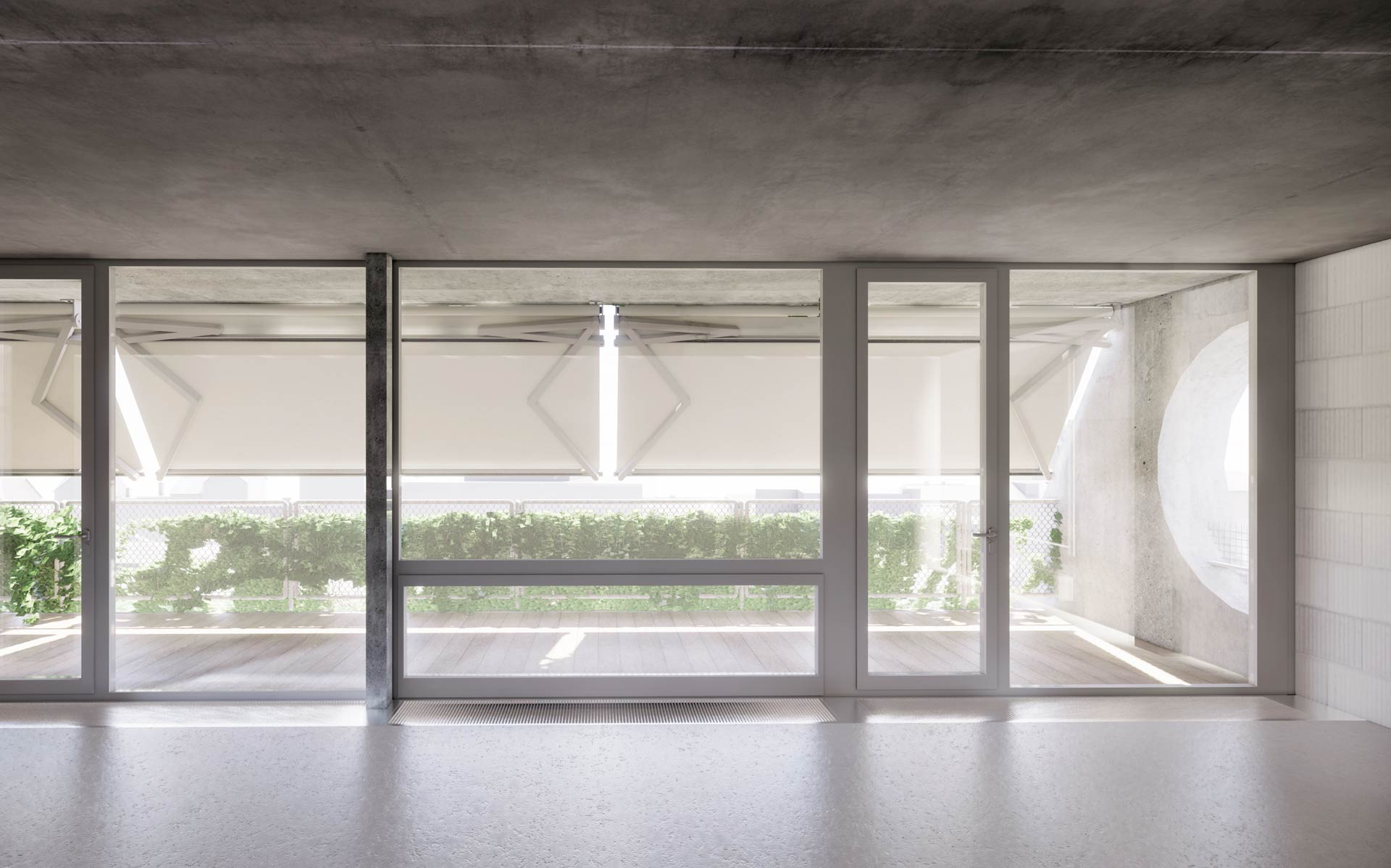 Dynamic thermal simulations and daylight simulations were used as analyses accompanying the planning. The proof of summer thermal insulation in accordance with SIA 180 was also carried out with the help of simulation in order to realistically represent the shading effect and wind stability of the planned folding arm awnings.
