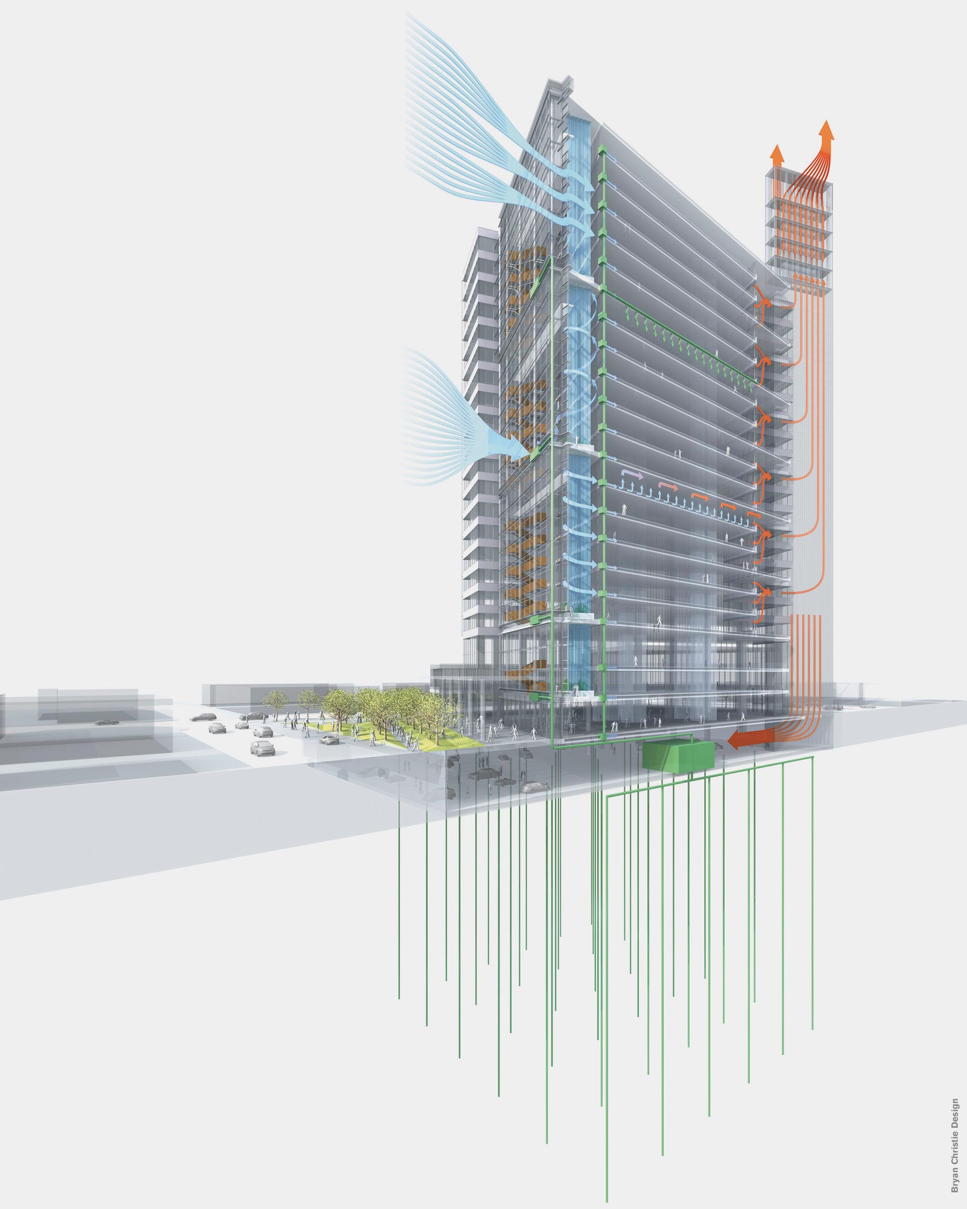 The potential for optimization through monitoring is aptly demonstrated in the 64,800m² Manitoba Hydro Place building project. The Stuttgart-based engineering consultancy Transsolar achieved an annual energy savings of around 5,000 megawatt hours using monitoring data, analysis, and cooperation from the building operator, a performance just slightly under the designed level of efficiency. Transsolar also performed monitoring analysis to optimize the energy use of the Shure Distribution GmbH headquarters in Eppingen. The data collected helped identify an incorrectly built mixing valve and a misplaced outside air temperature sensor, the latter of which had hindered the control of the entire system.