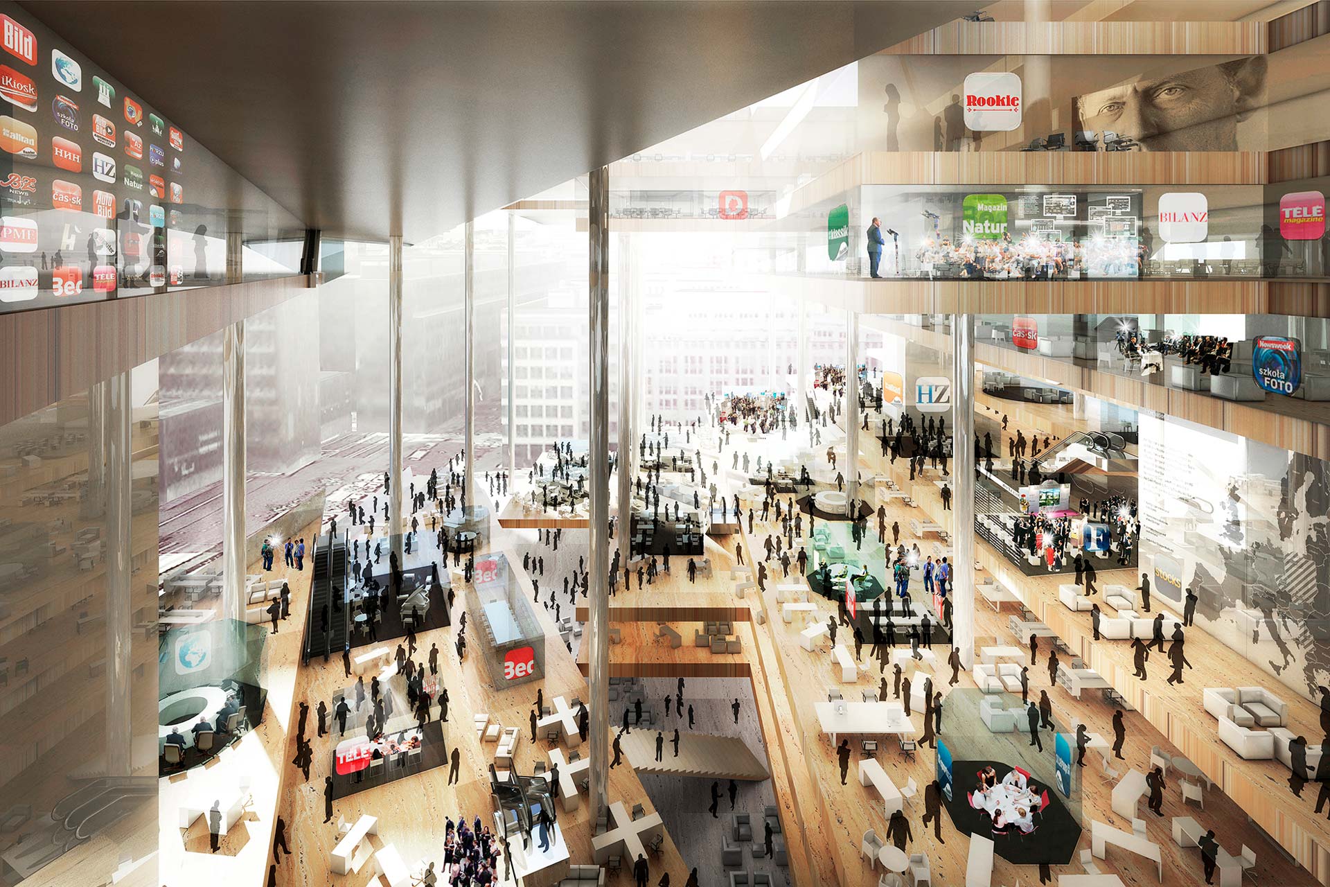 Der Neubau des Medienunternehmens Axel Springer in Berlin wird der neue Arbeitsplatz für 3.500 Mitarbeiter sein und steht im Zeichen der Entwicklung hin zum digitalen Medienbetrieb. Das Gebäude befindet sich unmittelbar gegenüber dem ursprünglichen Hauptsitz von Axel Springer.