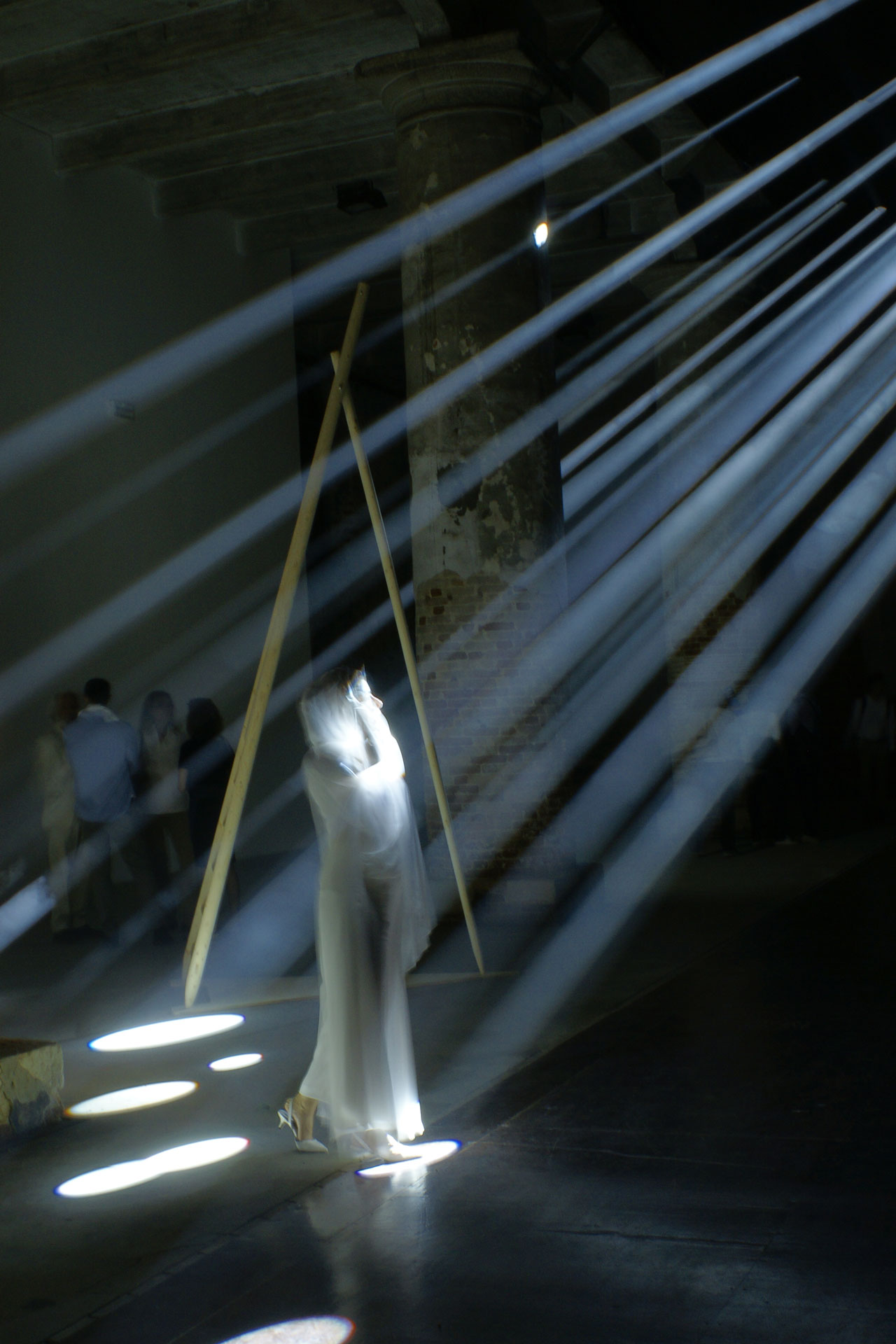 Die Idee zu dieser Lichtchoreographie entstand im Zusammenspiel von Anja Thierfelder und Transsolar, von Architekturästhetik und Ingenieurskunst. Um Sonnenstrahlen sichtbar zu machen, ist ein umfassendes Wissen erforderlich, wie Raumkonditionen gestaltet und kontrolliert werden können. Erst eine bestimmte Kombination aus Luftfeuchtigkeit, Temperatur, Luftschichten und Luftbewegung im Raum haucht der Installation „Lightscapes“ Leben ein und macht den Lichtregen für die Besucher im Arsenale erlebbar.