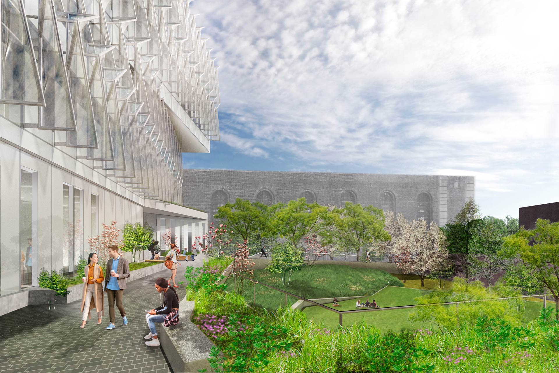 Transsolar hat die Aufgabe übernommen, Nachhaltigkeit in das Design zu integrieren; durchaus mehr als eine einfache Ingenieursleistung, denn als Ziel bedeutet tiefe Integration der technischen Systeme in das architektonische Design. Das Ergebnis beruht auf Niedrigenergie-Designstrategien, unterstützt durch ausgeklügelte technische Ausrüstung.