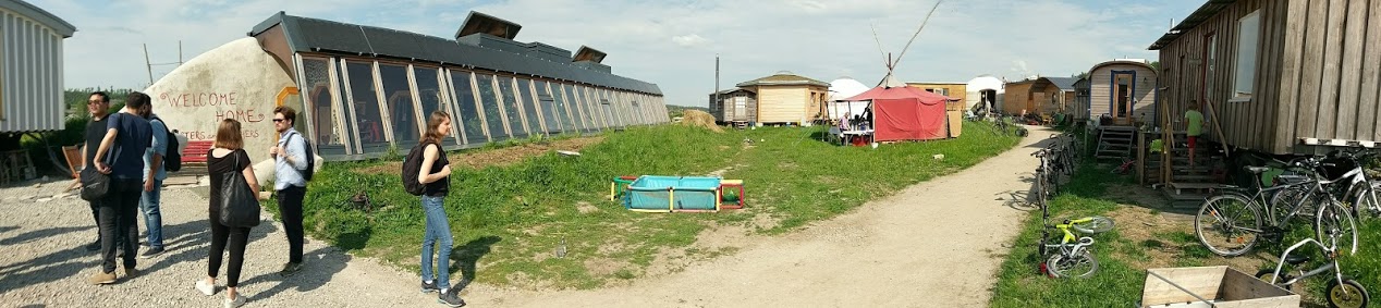 The last stop was the Earthship at the off-grid and intentional community, Tempelhof. Approximately 15 residents live around the Earthship, which contains shared facilities (bathrooms, kitchen, living room, greenhouse). The Earthship has no active heating or cooling; it does this by leveraging climate-responsive, passive architectural design. In its first winter, after three weeks of cloudy weather, indoor temperatures remained above 14°C.
