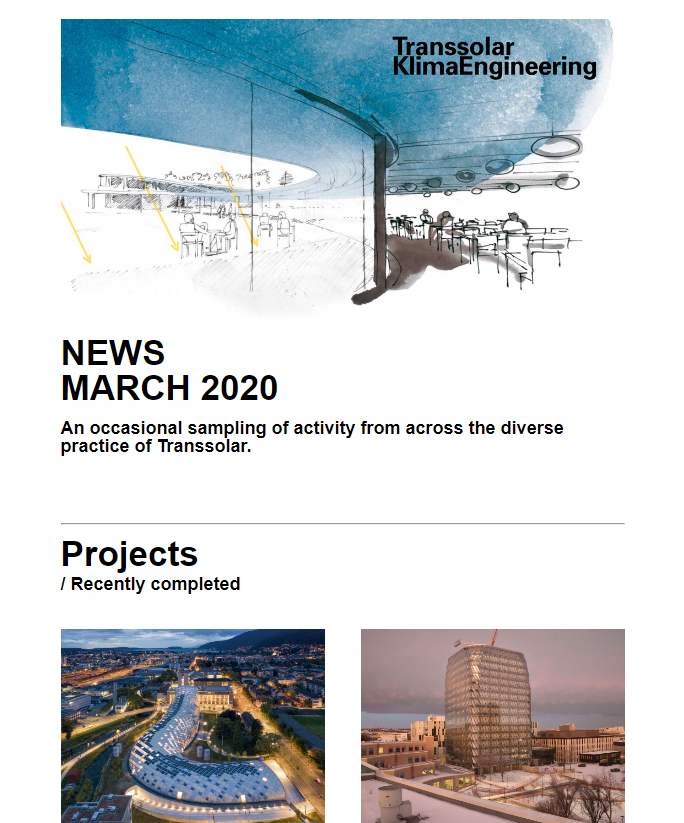 We are excited to share our most recent edition of the Transsolar Newsletter. Customized especially for clients, collaborators and friends of our New York office, this is where we share our thoughts on interesting projects, ideas, and initiatives.