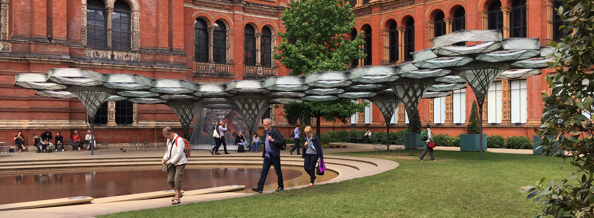 As a centrepiece of the V&A’s Engineering Season Elytra Filament Pavilion demonstrates how architectural design can unfold from a synergy of structural engineering, environmental engineering and production engineering, resulting in unique spatial and aesthetic qualities. The installation is open until Sunday, 6 November 2016.
