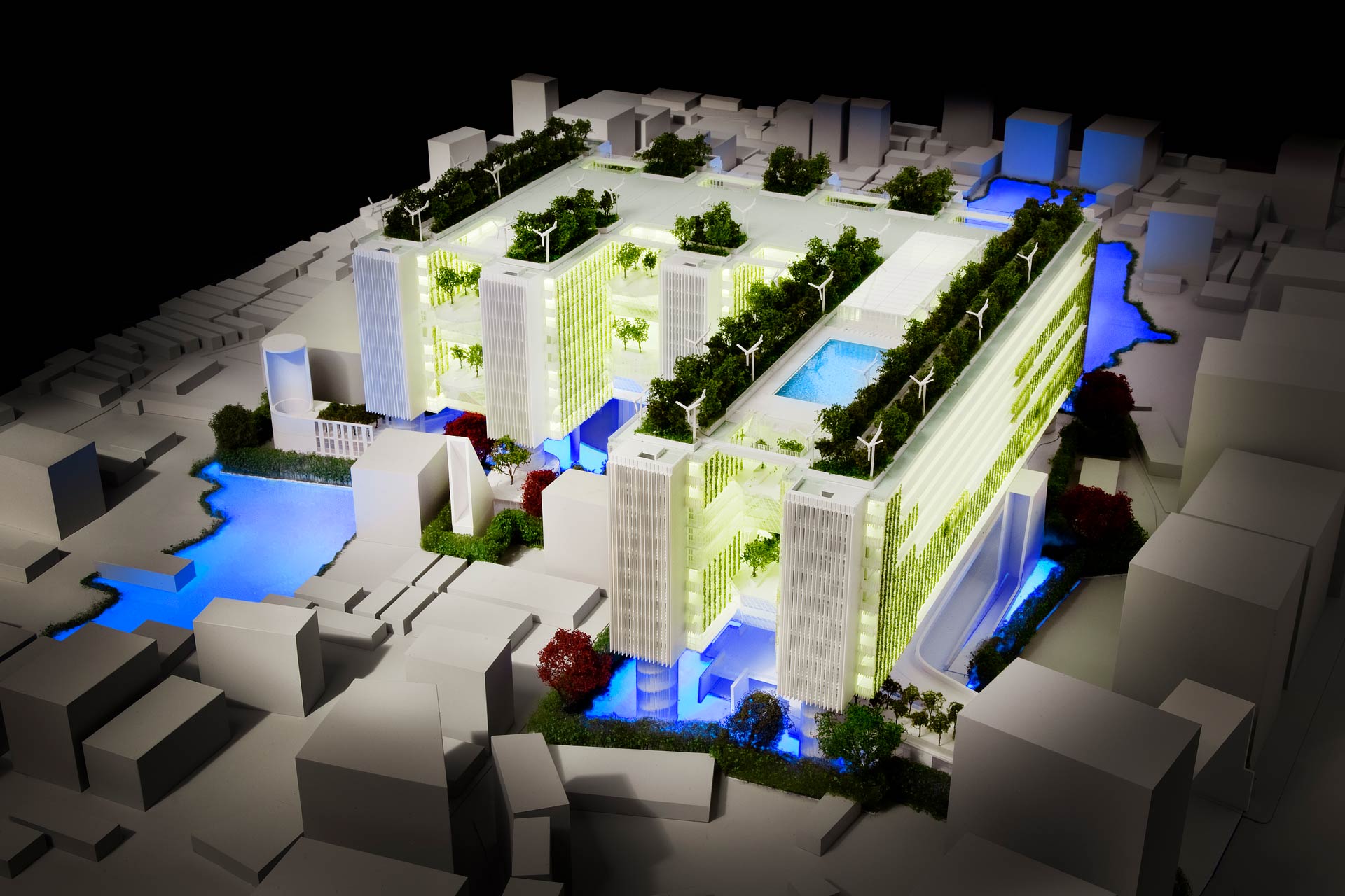 Le projet réalise l’impossible en ajoutant à la fois de l’espace bâti, et de l’espace ouvert à la ville. Le chantier se situe dans une zone marécageuse fortement polluée à Dhaka. Le maître d’ouvrage est l’Université BRAC (Building Resources Across Communities) qui est gérée par l’ONG du même nom. L’équipe projet a conçu un bâtiment flottant sur un étang préalablement transformé en un bassin de bio-rétention. L’ensemble de l’édifice est accessible de plain-pied au public. Des brise-soleils et des façades végétales optimisent le climat intérieur tout en réduisant les besoins en refroidissement de 40%. Les ‘breezeways’, les passages couverts à ouverture latérale, représentent à peu près 40% de la surface utile et constituent des espaces d’interaction informels ventilés naturellement. La ventilation mécanique est seulement installée là où elle s’avère nécessaire - de façon décentralisée et par étage. Les locaux techniques centralisés et les conduits sont réduits au minimum. Le recyclage des eaux et l’utilisation de l’eau de pluie réduisent de moitié la consommation d’eau. Le nouveau bâtiment universitaire de 11 étages et d’une surface de 130.000 m² accueillera quelques 11.000 personnes. Transsolar a développé un concept climatique novateur reposant sur le confort adaptatif et la ventilation hybride. Les concepts combinent une excellente qualité de l’air ambiant et un confort thermique de bon niveau. Le projet se détourne des concepts conventionnels en renonçant aux façades vitrées fermées et aux modes conventionnels de refroidissement et de ventilation mécanique. Le concept de confort adaptatif a été vérifié et intégré dans le design. La circulation d’air par ventilateurs rend les pièces confortables, même lorsque la température est élevée et l’humidité de l’air importante. L’air neuf est tempéré ce qui élimine l’excès de l’humidité, si nécessaire. Le système maintient la teneur en CO2 à bas niveau, avec un minimum d'investissement. Environ 75% des espaces fermés sont conçus pour le confort adaptatif et la ventilation hybride. La consommation totale d’énergie électrique est réduite de 40% par rapport à une conception conventionnelle. Un quart de la consommation est couvert par l’installation photovoltaïque sur le toit.