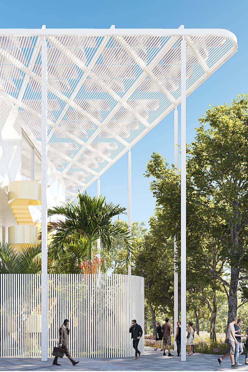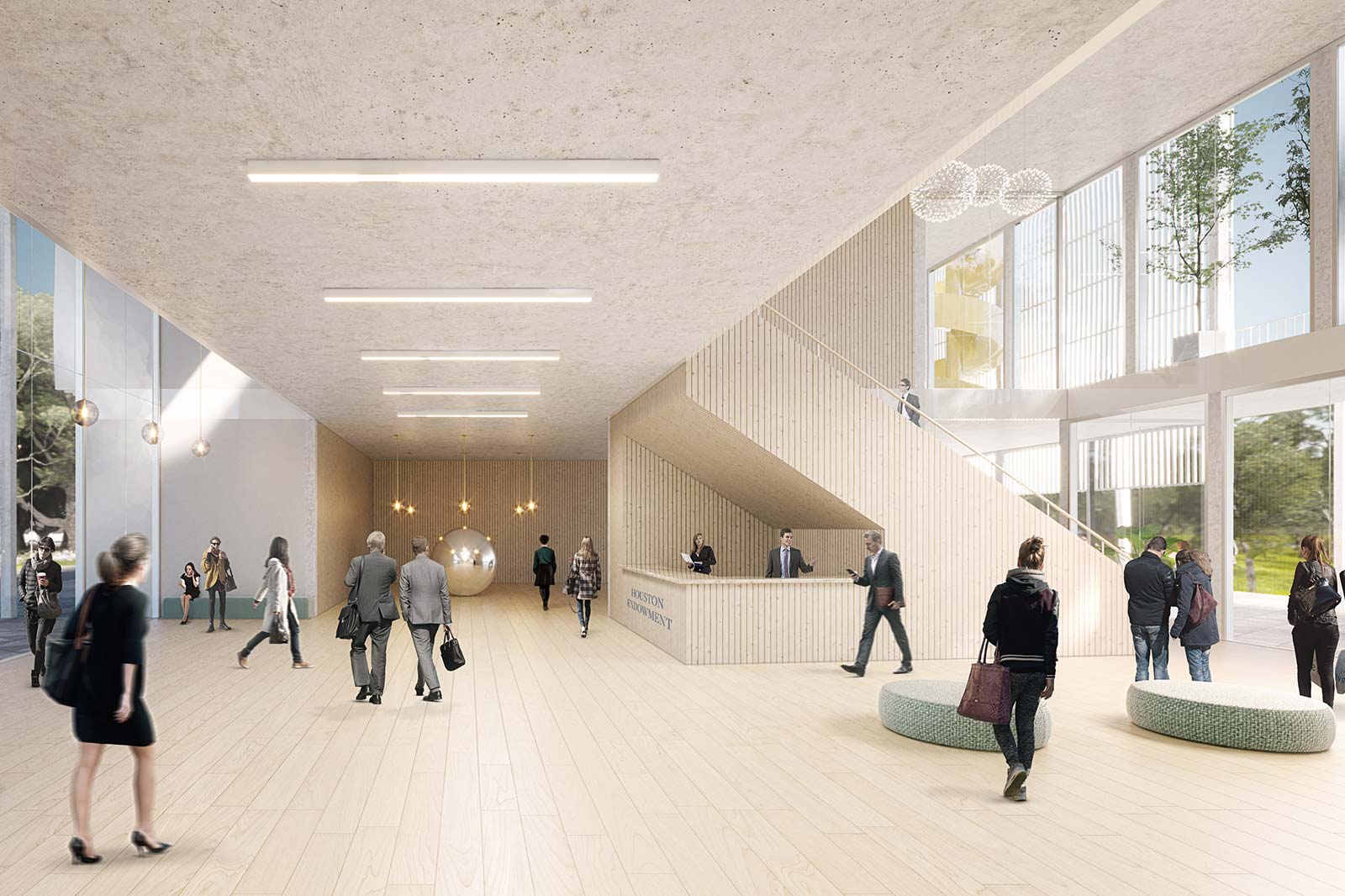 It will provide office space, including large, multi-use on-site event and meeting rooms, a mix of closed and open workspaces for the foundation's staff and flexible conference rooms. Slender concrete columns give the building a versatile and efficient structure in which activities can be arranged in an informal manner.