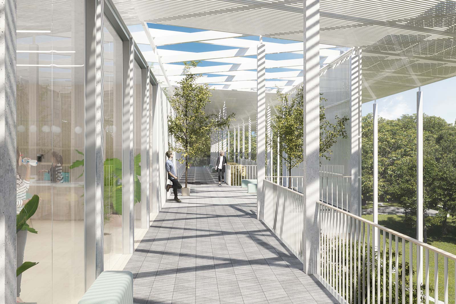 The foundation aims to reduce the environmental impact and optimize the operational efficiency of its new headquarters, so the Net Zero Challenge 2030 was set as the primary sustainability goal of the project. This standard means climate neutrality by 2030 by prioritizing energy efficiency in planning and design, a challenge that Transsolar is happy to accept.