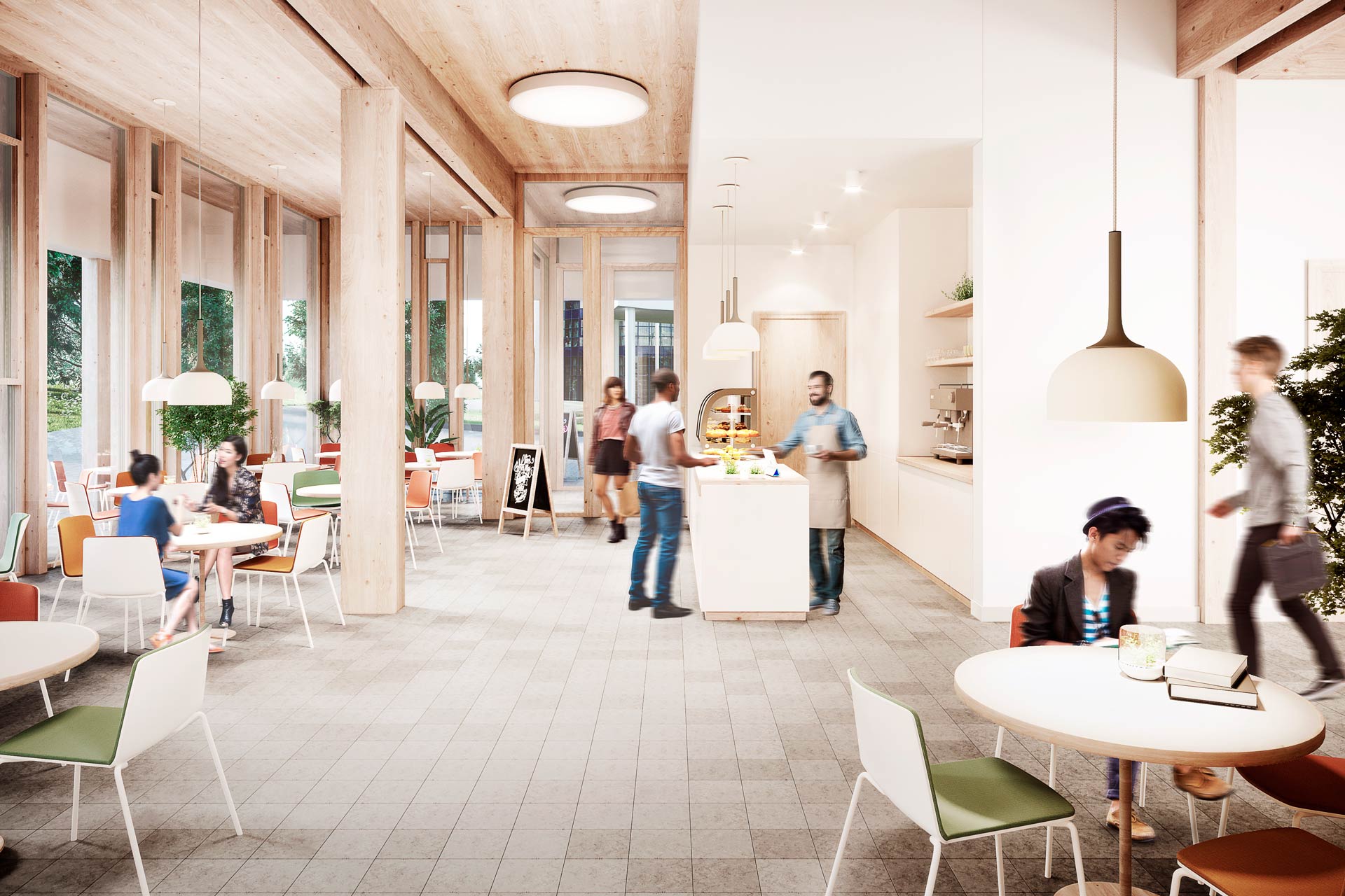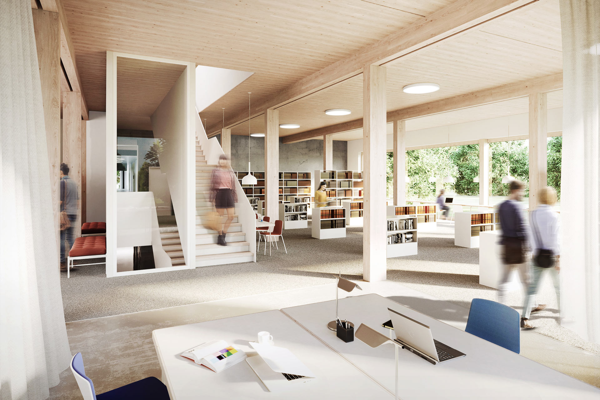Nine seminar rooms will be created, some of which can be flexibly interconnected for 25-200 people; a multi-story library, café with lounge area, and a room of silence. A large, flexibly usable event room will offer space for up to 355 people. More than 50 offices are planned to be used in various ways. For student learning groups, 26 learning rooms will be created, plus about 100 open learning spaces in communication zones. The outside area will also be redesigned, and a café, learning meadows and recreational facilities will be created.