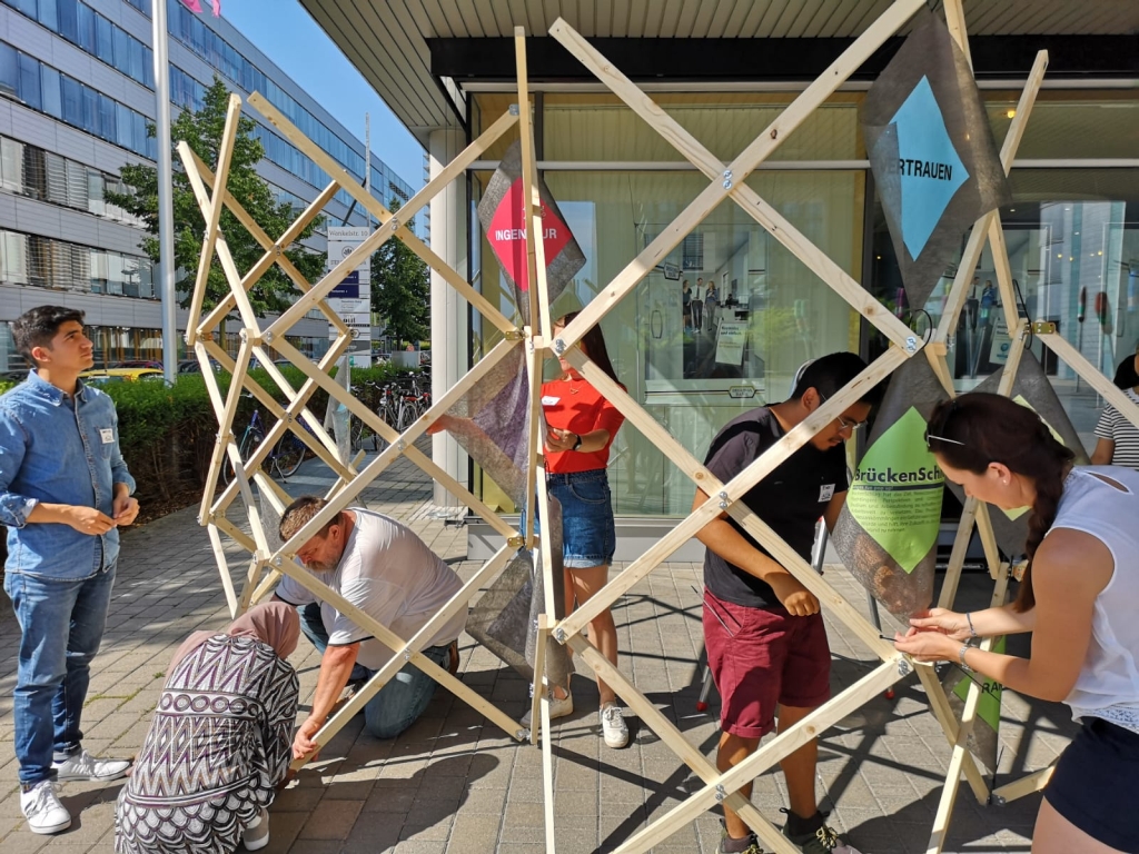 The project Brückenschlag is based on the competition „Place & Displacement Competition 2018, Integrating Refugee Populations within Cities“. Our winning team did not want to rest on the laurel of theory and finally realized the idea and presented it and “built the bridge” for the first time.