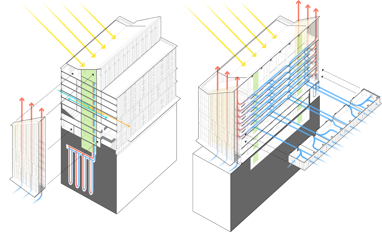 Transsolar worked collaboratively with the team to design a climate-responsive façade with an integrated ventilation concept that encourages flow of natural air and daylight into all student spaces.
