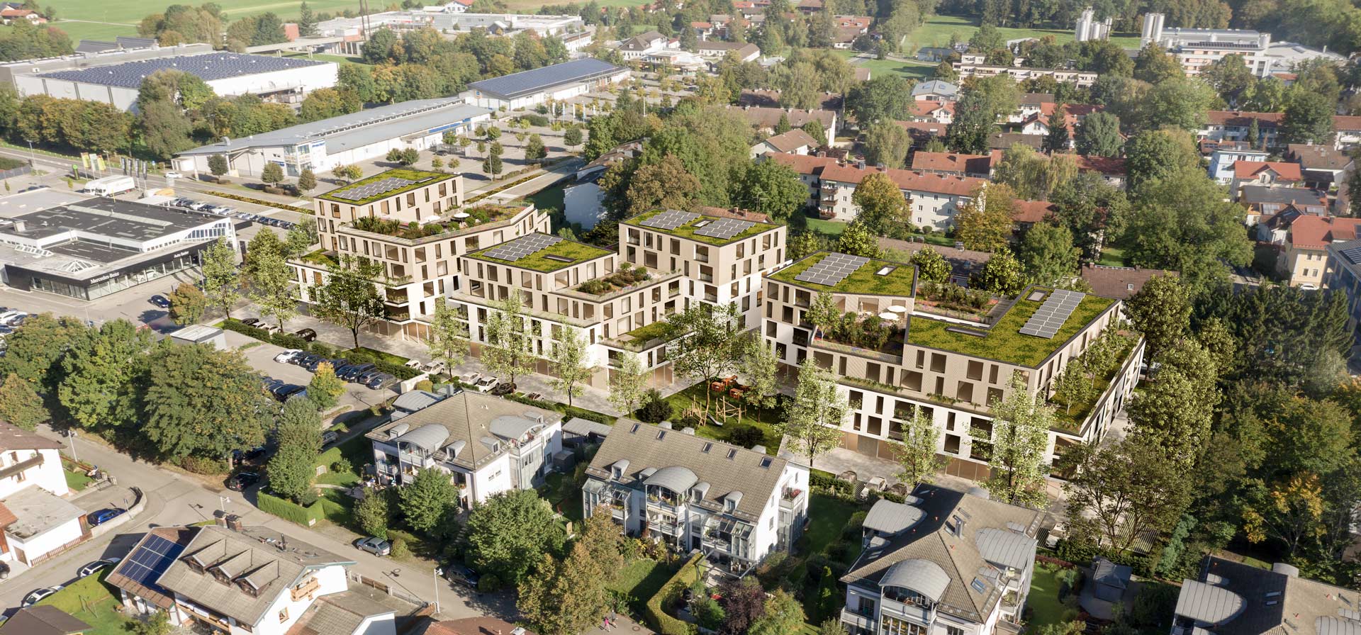 Two new buildings (approx. 11,000 m²) with high environmental quality and energy efficiency are planned at the corner of Münchner- and Westend-Straße in Bad Aibling.