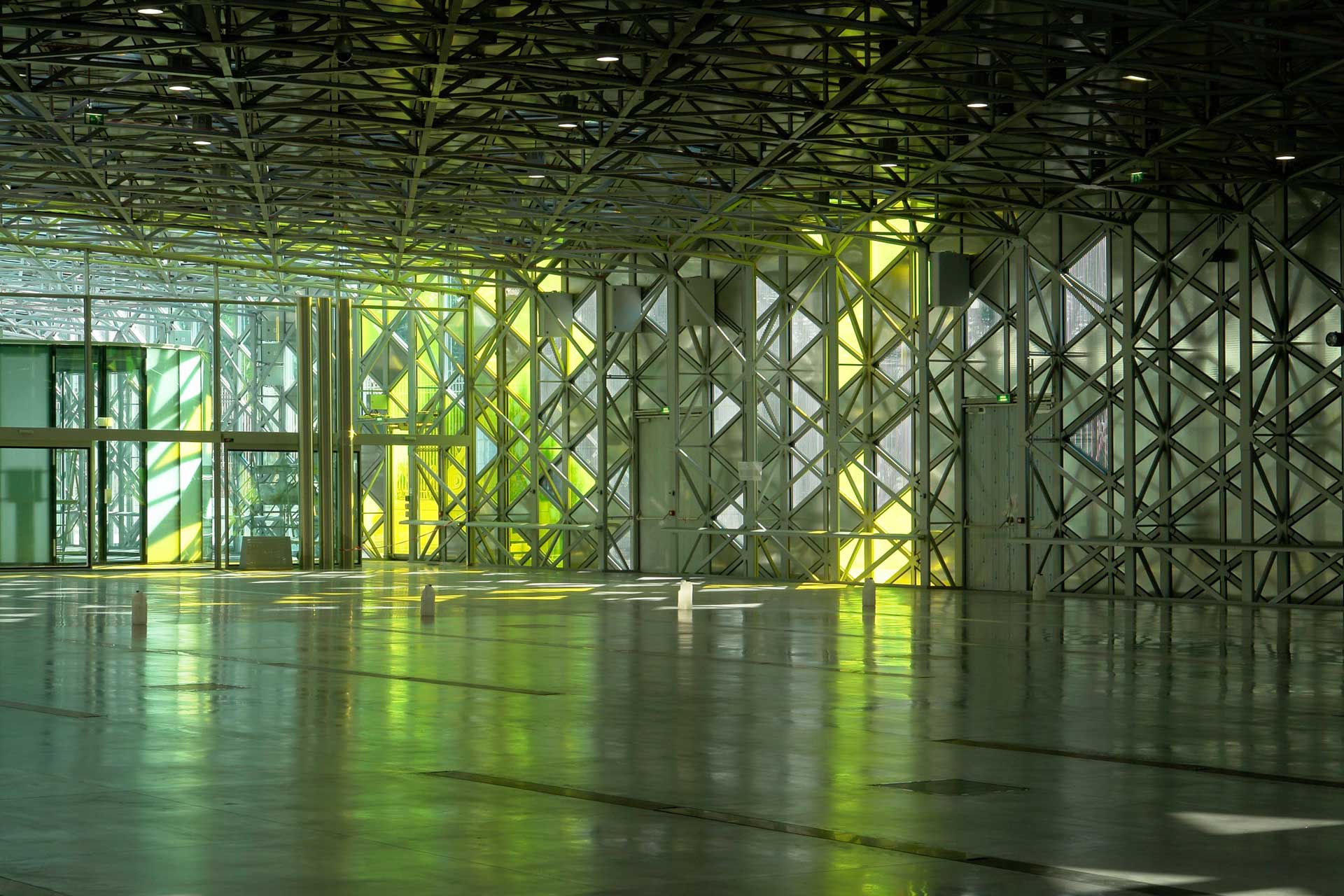 The building envelope functions in two ways. Besides thermal protective properties the various panels of the external layer enable a modulation of the luminous and solar contributions in the various zones according to the ad hoc needs. The outer skin does not only filter light, it also allows its absorption and its conversion into energy besides regulating the exchanges of air and heat. The natural ventilation of the building, the heating and cooling via reversible active slabs as well as an interior layer of the envelope with low emissivity (low-E layer) on the interior walls makes it possible to increase the thermal comfort of the occupants. The layer with low emissivity of the interiors walls makes it possible to reflect the energy dissipated by the heating/cooling slabs, like a thermal mirror, allowing an increase in perceived thermal comfort of the occupants. A geothermal system using foundation piles is used as energy source.