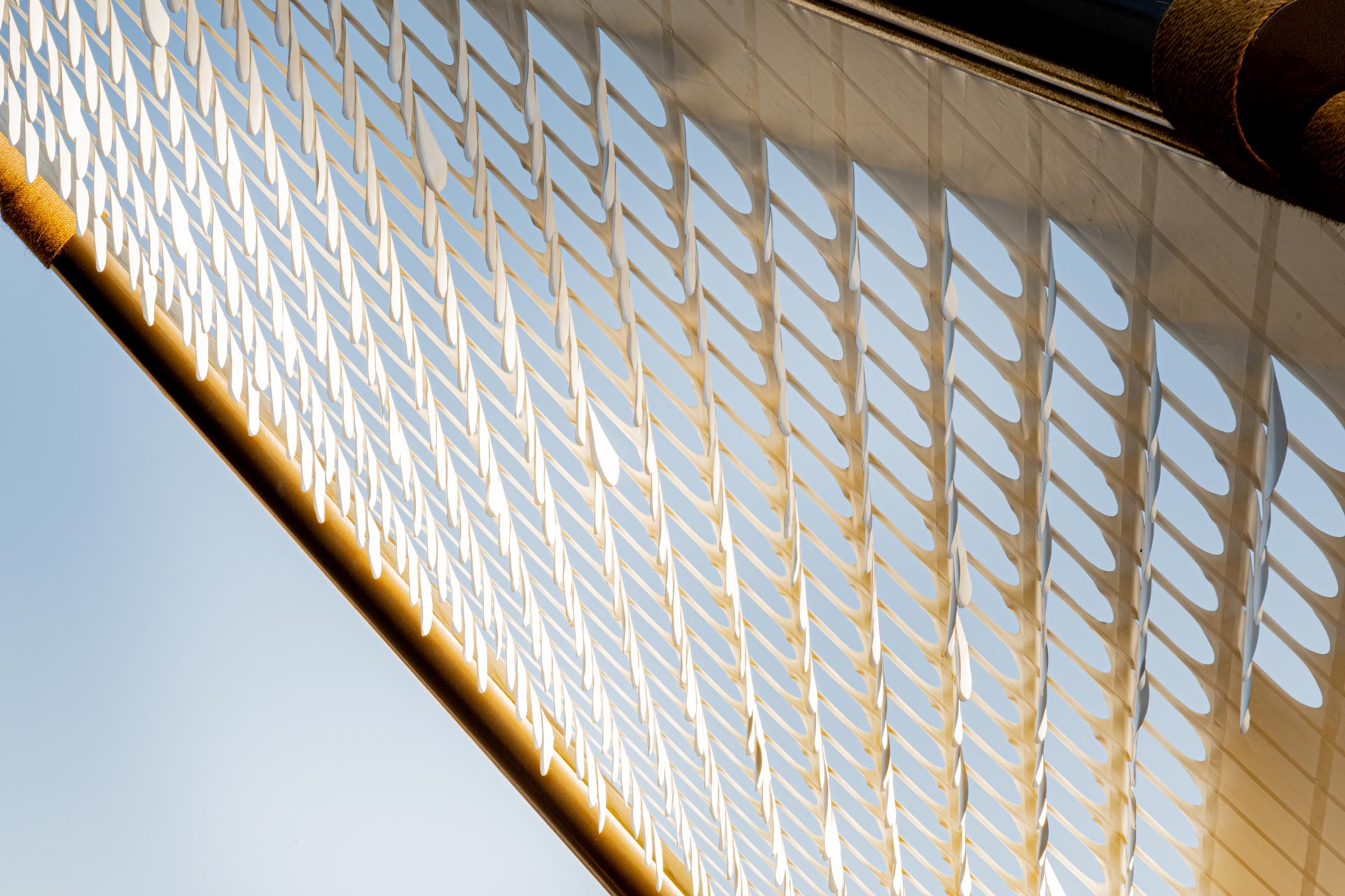 Complementary to vegetation and the ship's hull itself, the two sails of the ship provide shade. These have been optimized with regard to their position and orientation as well as the material. The sails provide shade, but do not heat themselves up too much, thanks to the open structure of the fabric, which allows ventilation.