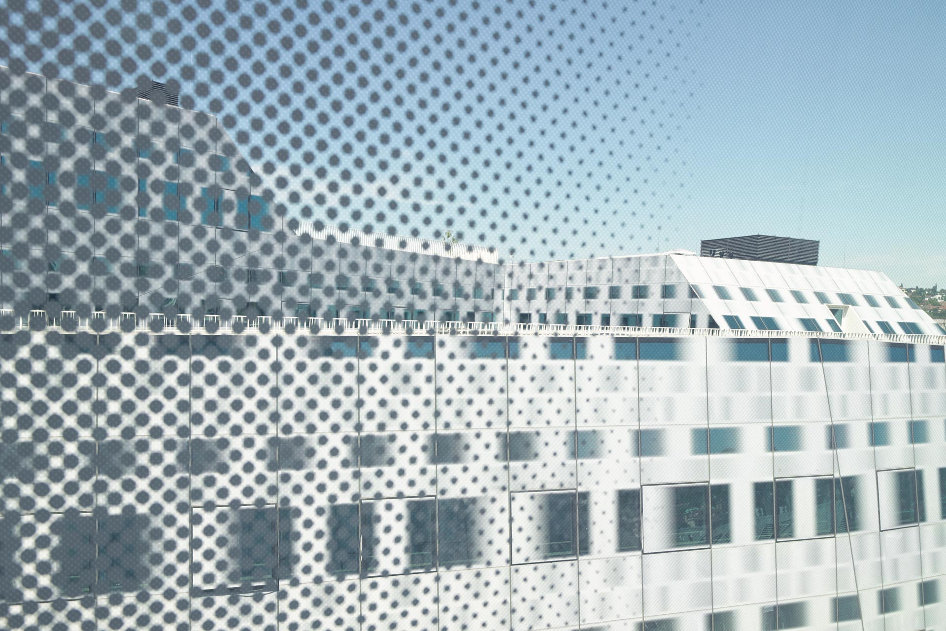 In Stuttgart, every building has a "fifth façade", due to the unique topography of the city: the roof. The roofscape has a special significance in a place where iconic roofs can be clearly seen from every viewpoint. For Dorotheen Quartier, shading and sun exposure studies informed the roof architectural design process, contributing to roof form, glazing ratio and material selection. The vertical glazing of the office attic is fritted, allowing an optimal amount of daylight for the office areas, and reflecting sunshine as diffuse light, thus improving the illumination of the inner courtyards and alleyways. Special care was taken for indoor and outdoor daylight access to avoid the conventional problem of dark inner city spaces.
