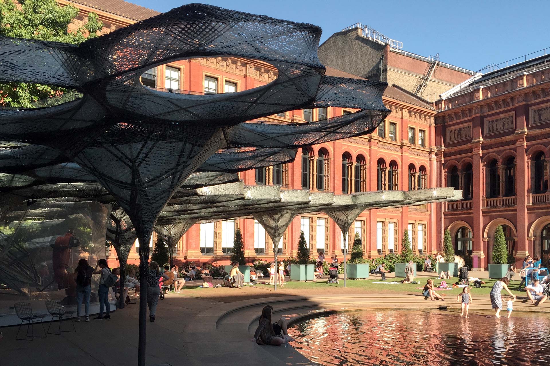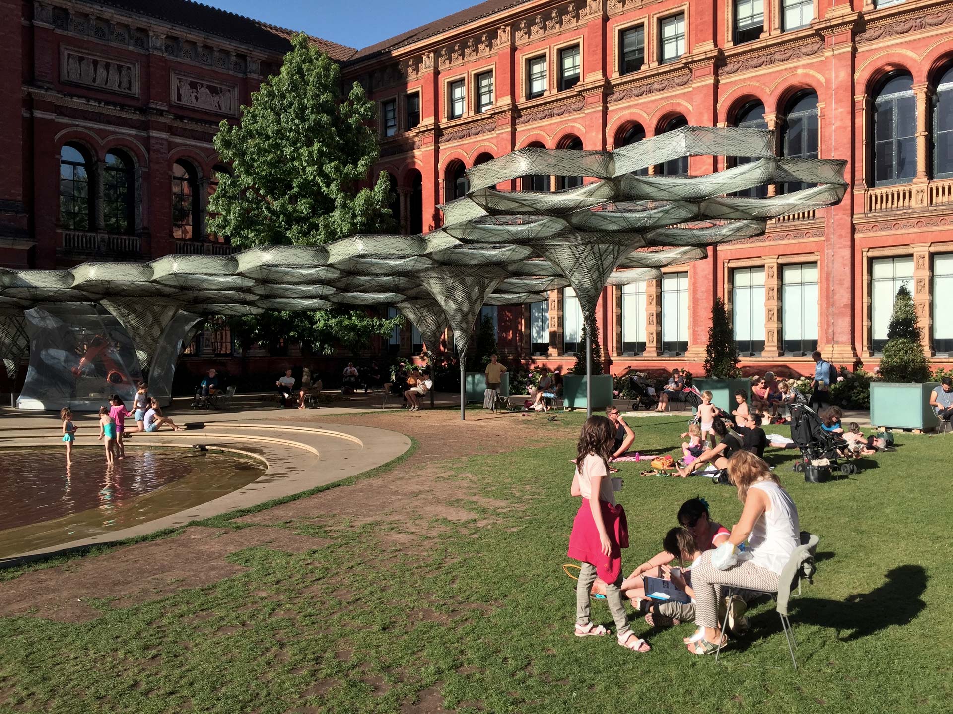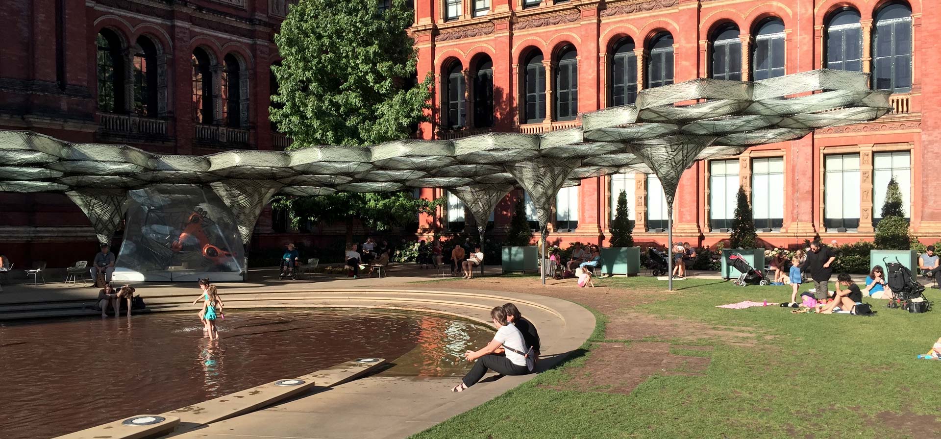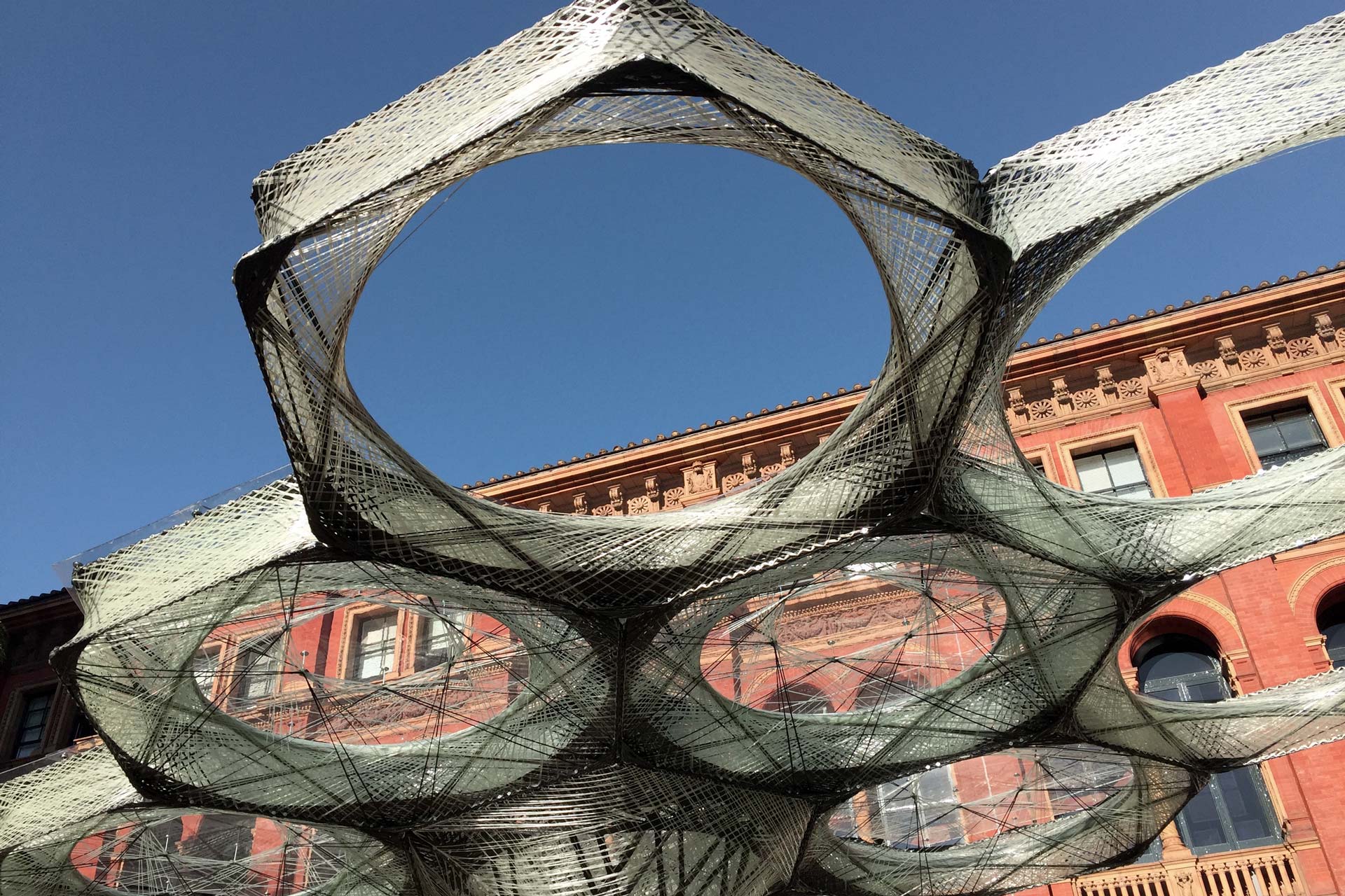 The Elytra Filament Pavilion was a site-specific installation in the courtyard of the Victoria & Albert museum in London. The installation was inspired by nature and fabricated by robots. The V&A Engineering Season highlighted the importance of engineering in our daily lives and its vital and creative role in the development of our built environment.