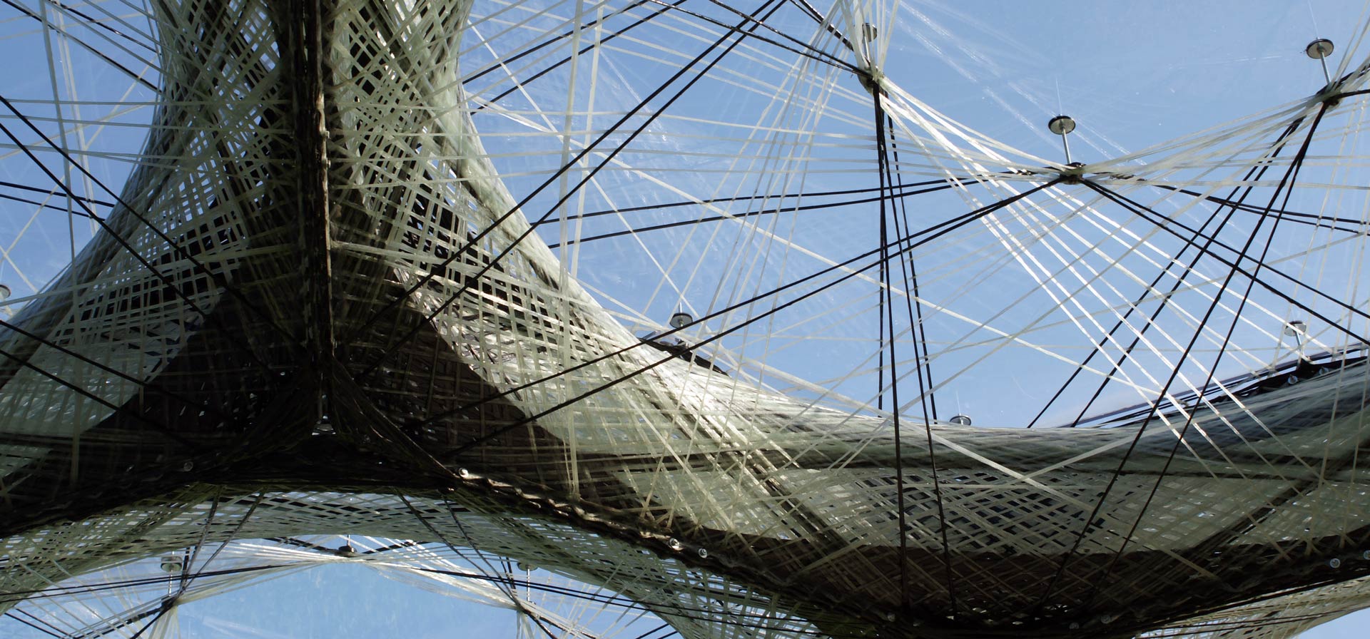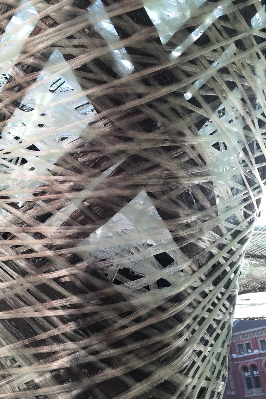 Inspired by a lightweight construction principle found in nature – elytra are the fibrous forewings of flying beetles – the Pavilion was an undulating canopy of tightly-woven carbon fibre cells created with a novel robotic production process. The Pavilion grew over the course of the V&A Engineering Season in response to data on structural behavior and patterns of occupancy in the courtyard, i.e. an evidence-based design method was employed. This data was captured by sensors in its canopy fibres.