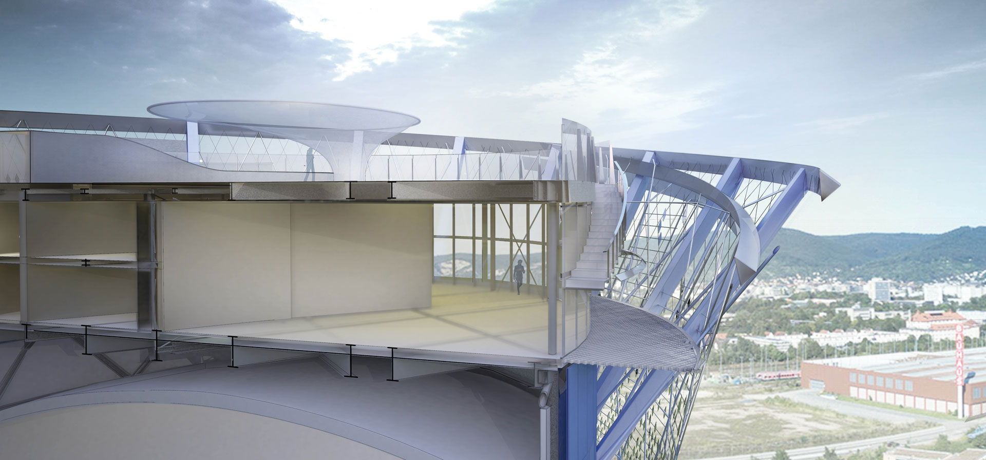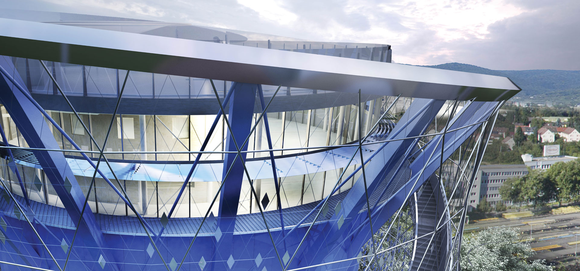 The store receives a modern façade construction. The top floor will house a dining facility, which leads to a total height of about 55m (utilizing elevators and circular staircase). The occupancy per floor is limited to a maximum of 200 people. The highlight of the bistro, which is open to the public, and the convention room is the 360 degree view over the Rhine and into the Neckar valley. So the question arises: "Which kind of façade combines the requirements for thermal protection in summer, good daylighting and unobstructed views?”