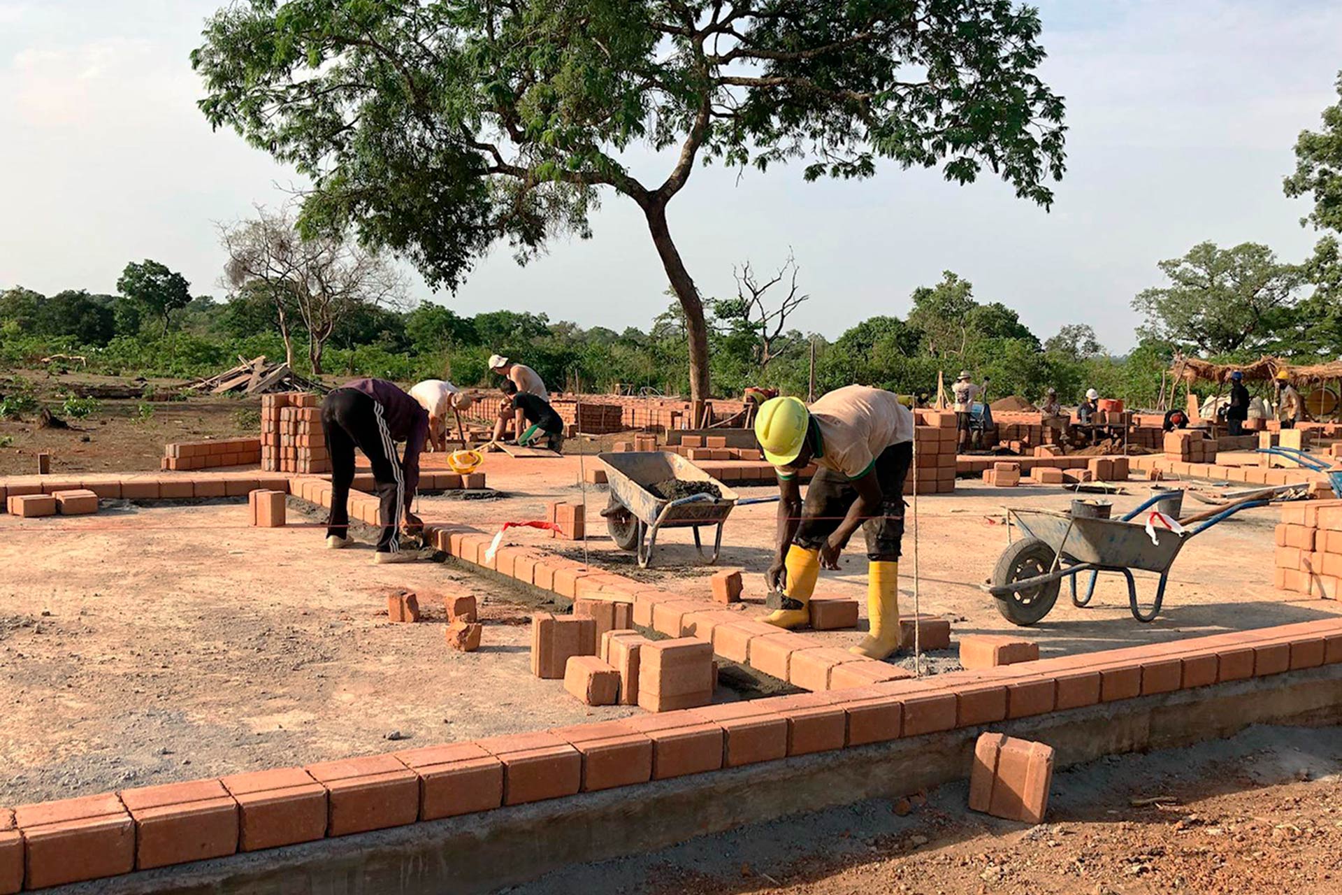 After one year of planning, construction began in January 2019 in several phases during the semester break. About 70 students from Germany and Guinea as well as young craftsmen were involved in the construction. The local vocational school "Centre de Formation Professionelle" and the German Münster Chamber of Crafts were also involved. Young trainees accompanied the students during the construction phases.
