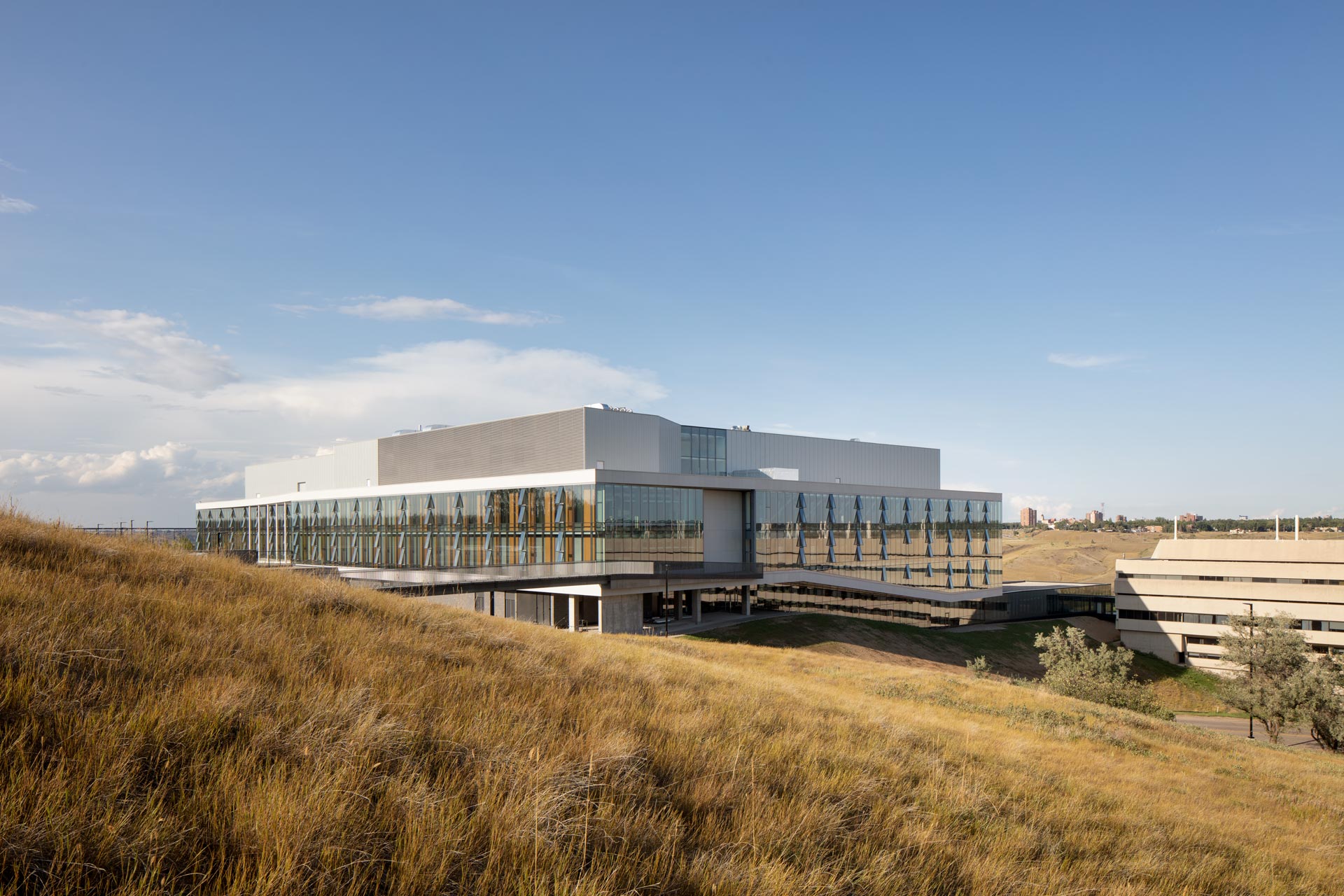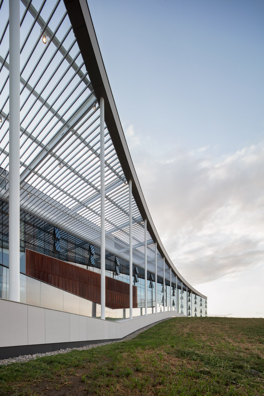 The Destination Project, the largest construction project of the University of Lethbridge to date, is a building dedicated to research and teaching of natural sciences, designed to offer comfort and functionality while keeping energy consumption low. Summers on-site are warm and humid, while winters are extremely cold. When Chinook occurs, the wind may have hurricane speed and cause extreme temperature fluctuations. For Transsolar, the task was to reduce energy consumption in order to create the most sustainable laboratory building in the province that would best support users and their work.