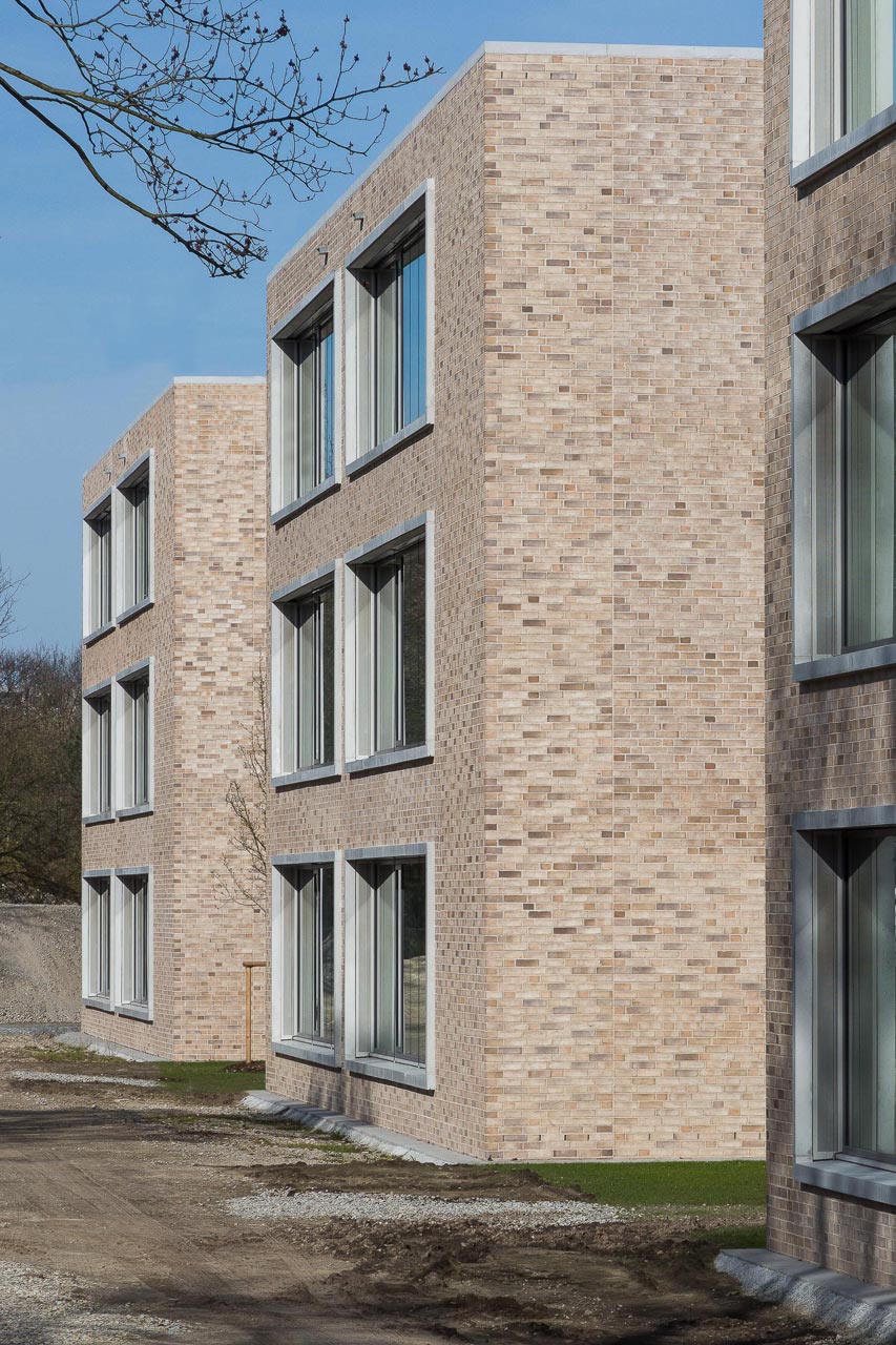 The new construction of the comprehensive school, consisting of five interconnected buildings, replaces old school buildings from the 1970s. The external appearance is characterized by bright exposed brickwork and large glass surfaces, framed by precast concrete elements.