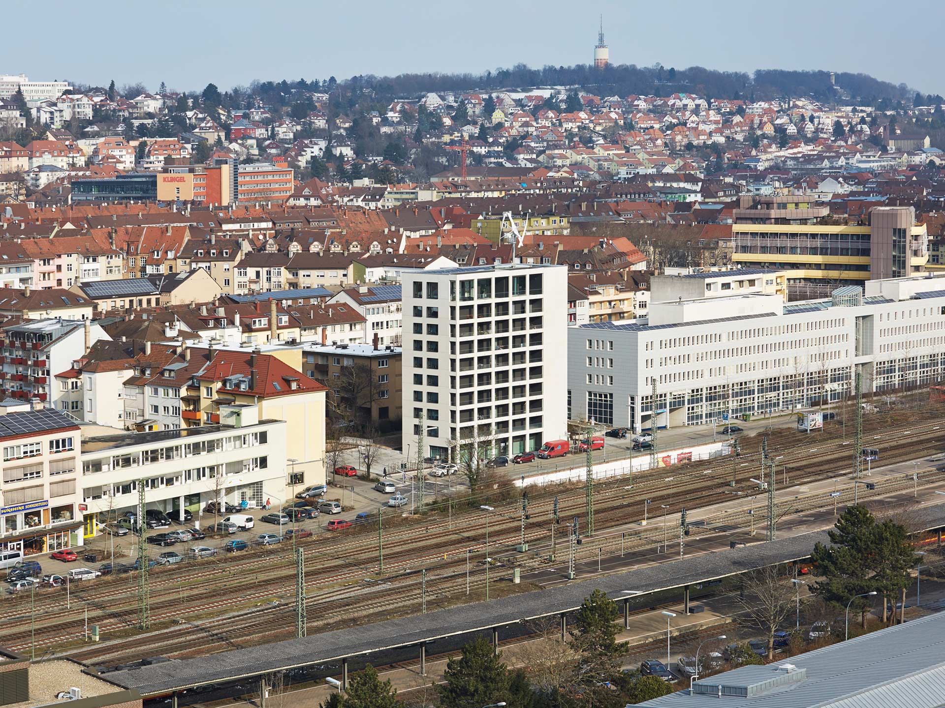 The nine-story residential high-rise from the 1970s was in need for refurbishment and is now a modern almost-zero-carbon-emission building. Located next to the main train station the building acts as a “light-house” in terms of sustainability and urban design quality. It was one of fifteen buildings funded by the German dena initiative "zukunft haus" (future house) with the aim "towards the Efficiency House Plus - carbon neutral construction and renovation". Only housing projects that go beyond the usual standards and use innovative solutions are considered for the funding.