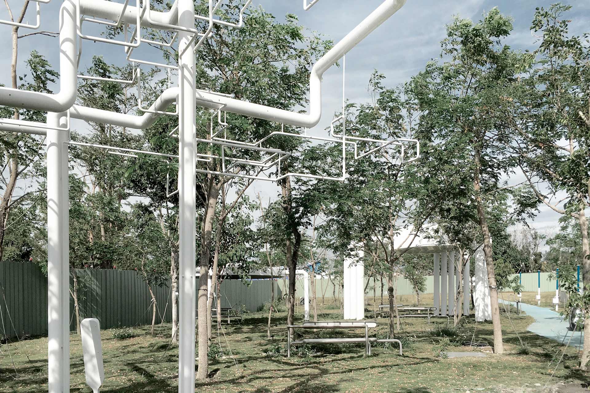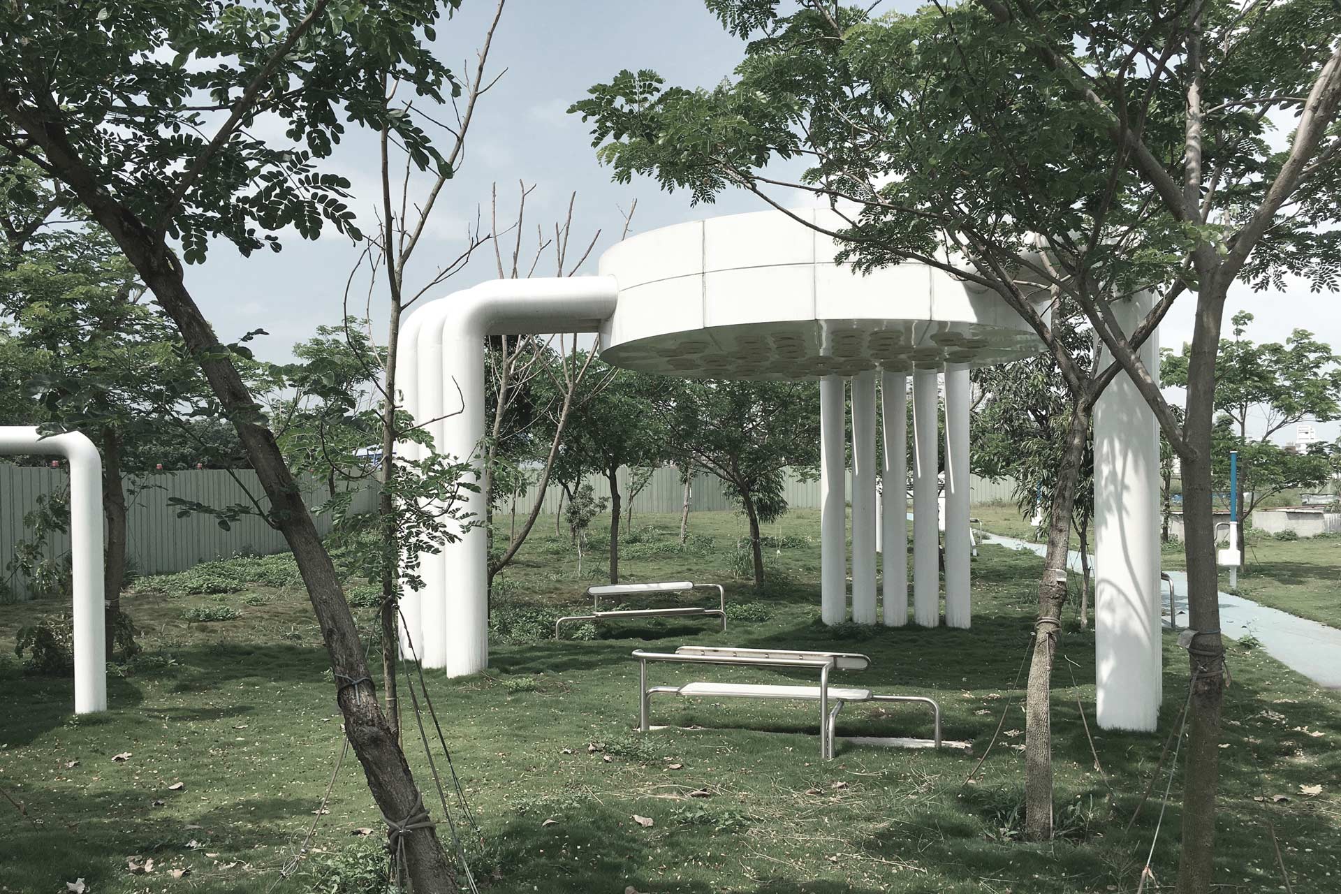 Transsolar worked in close collaboration with the architects to provide input to the design process aimed at maximizing user comfort in the public park area of the Taichung Jade Ecopark. Devices were developed that influence outdoor comfort by convection, radiation and conduction. These will be distributed throughout the whole park and deal with humidity, pollution and heat. In this way local attractions are generated with the target to positively influence the comfort for the visitors.