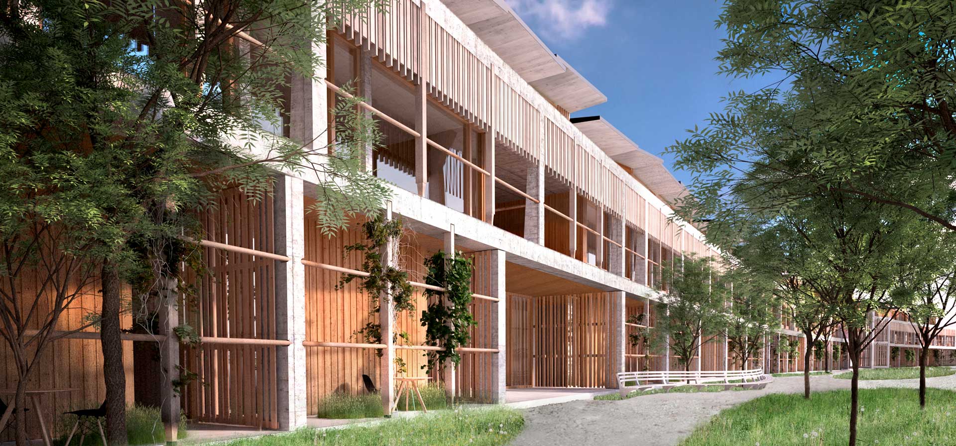 In May 2012, the architecture office Herzog & de Meuron won the two-stage competition for the design and construction of the new facilities. The proposed design is composed out of two forms: The 7-storey building on the north side, with its cylindrical form, contains laboratories, teaching and research spaces. The department for acute care on the south side of the grounds is a flat box with an outer façade of wood, with floors alternately jutting out and receding. Interior courtyards allow more daylight into the building and provide protected green spaces. Given its diverse programming, this southern building is more akin to a small city than a building.